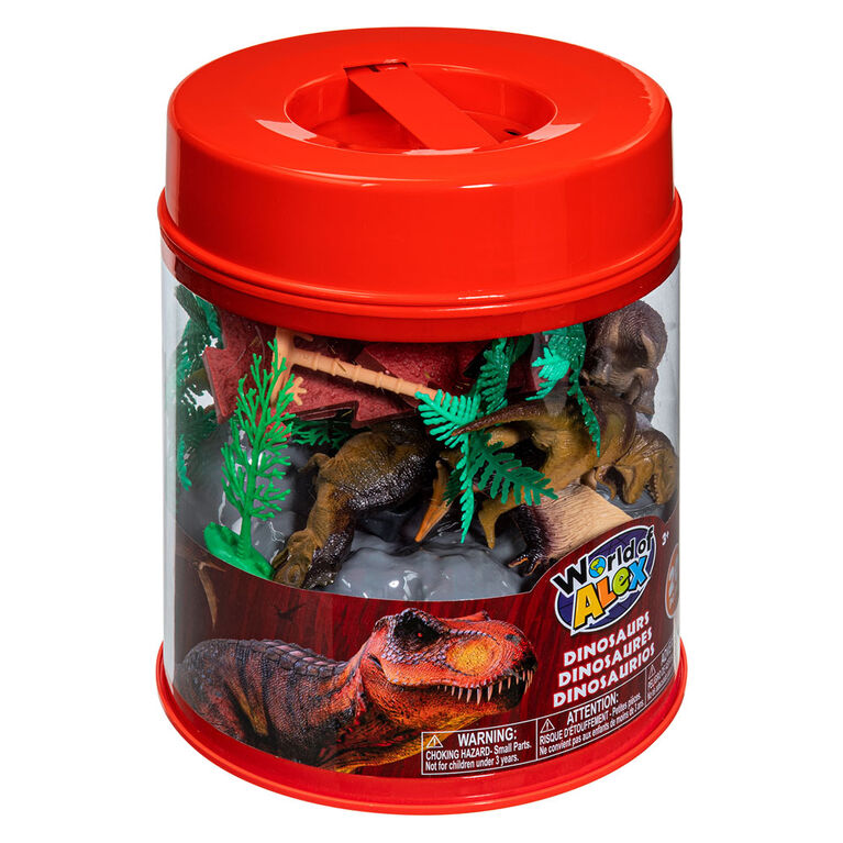 Unique, only available at our store. Travel back to the era of the dinosaurs with this 20 Piece Dino Bucket from World of Alex. An assortment of the most popular dinosaurs and accessories to let your child imagine life a billion years ago.