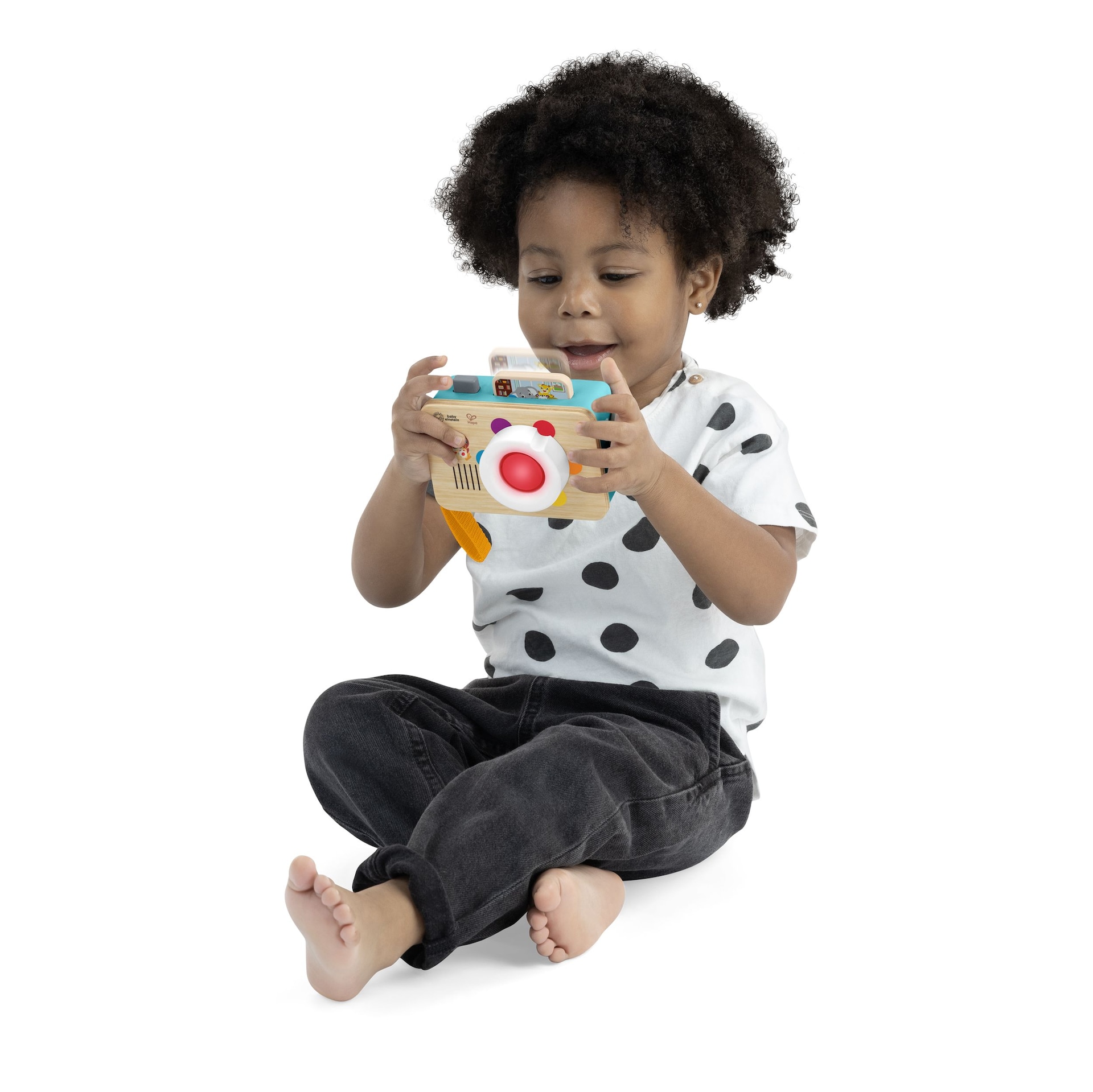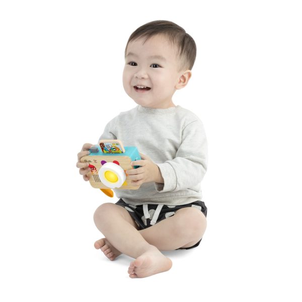 Colour learning is a snap with the Baby Einstein + Hape Learning Lens Toy Camera. Two interactive features engage baby in pretend play and colour learning and hone cause and effect and fine motor skills with every press and twist. Twist the camera’s lens to put colour learning into focus. Each time baby presses the button, a “photo” pops up and baby can hear real-life shutter sounds to teach cause and effect and reward baby’s movements while seeing their reflection on the back. Teaches colours and fine motor skills.