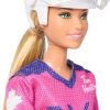 Barbie Tim Hortons PWHL 2025 Fashion Doll in Pink, Purple, & Teal Hockey Jersey, Includes Hockey Stick, Puck, and Helmet