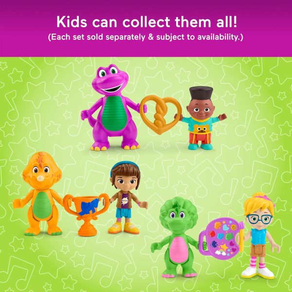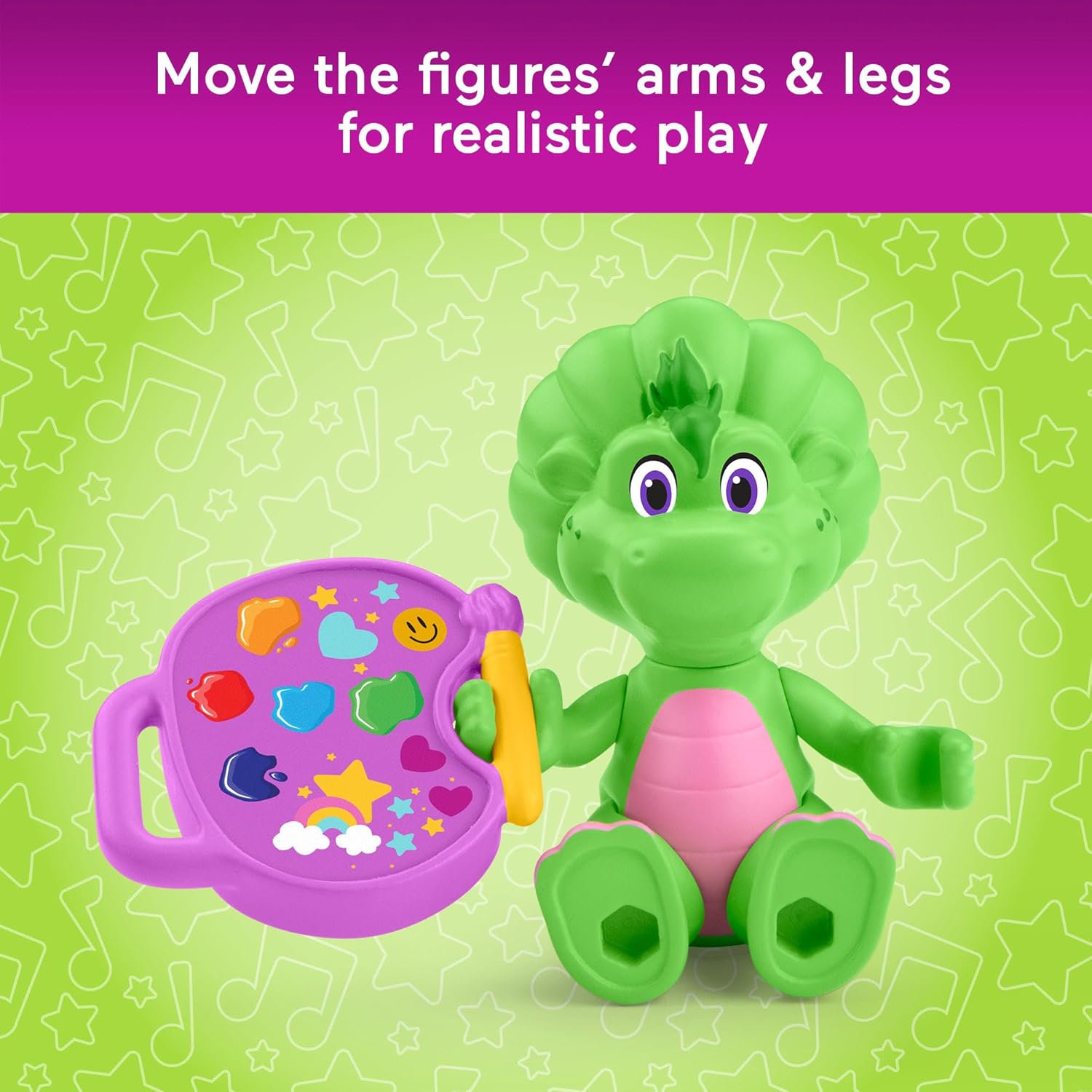 - Kids can act out creative stories inspired by the Barney’s World series with this 3-piece figure set