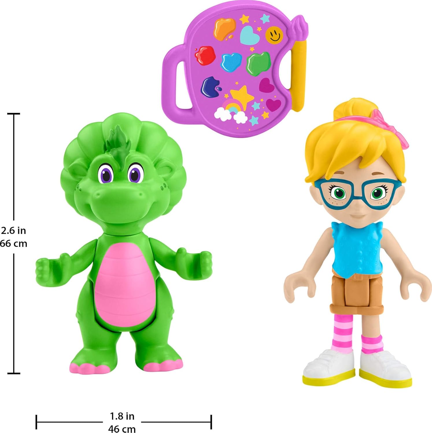 - Includes poseable Baby Bop and Barney’s Friend Vivie figures, plus a paint palette accessory piece
