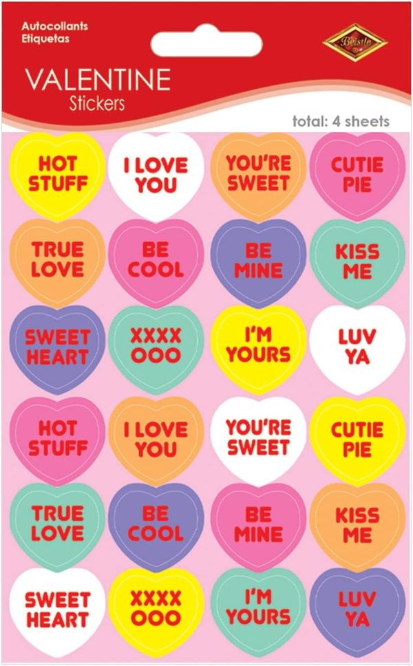 Beistle 74005 Candy Heart Stickers Party Favors, 4-3/4-Inch by 7-1/2-Inch, 4 Sheets Per Package
