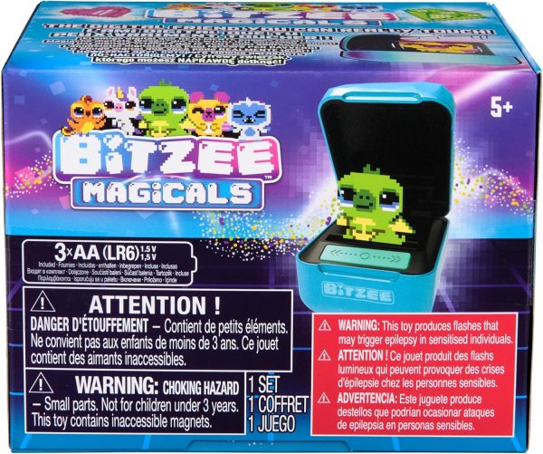 Introducing Bitzee Magicals, fantastical digital friends you can really touch and feel. Like Bitzee digital pets, Magicals respond to swipes, tilts, shakes and touch with sounds and reactions. Each character starts a baby and needs love and care to grow. The more you play, the more you’ll unlock. Feed them and play, rock them to sleep, clean up after them and give them love. Watch them grow from baby, to adult, to Super Bitzee. When a rare or legendary friend becomes a Super Bitzee, it splits between 1 of 2 possible Splitzee characters. Play games with your fully evolved Magicals and collect gems to add to your Treasure Chest to attract new characters. There’s more ways to play: cast spells with the Magic Wand and experience a fun transformation; earn Potions as you play games to change your friend’s colors. Collect all 20 characters and take your collection anywhere. Kids and adults will be mesmerized with Bitzee’s screen-free innovative twist on 90s toys & games. Must-have for birthday gifts or gifts for any occasion. Warning: produces flashes that may trigger epilepsy in sensitised individuals. Includes 3 AA batteries. Bring home a new way to experience Bitzee toys with Magicals.