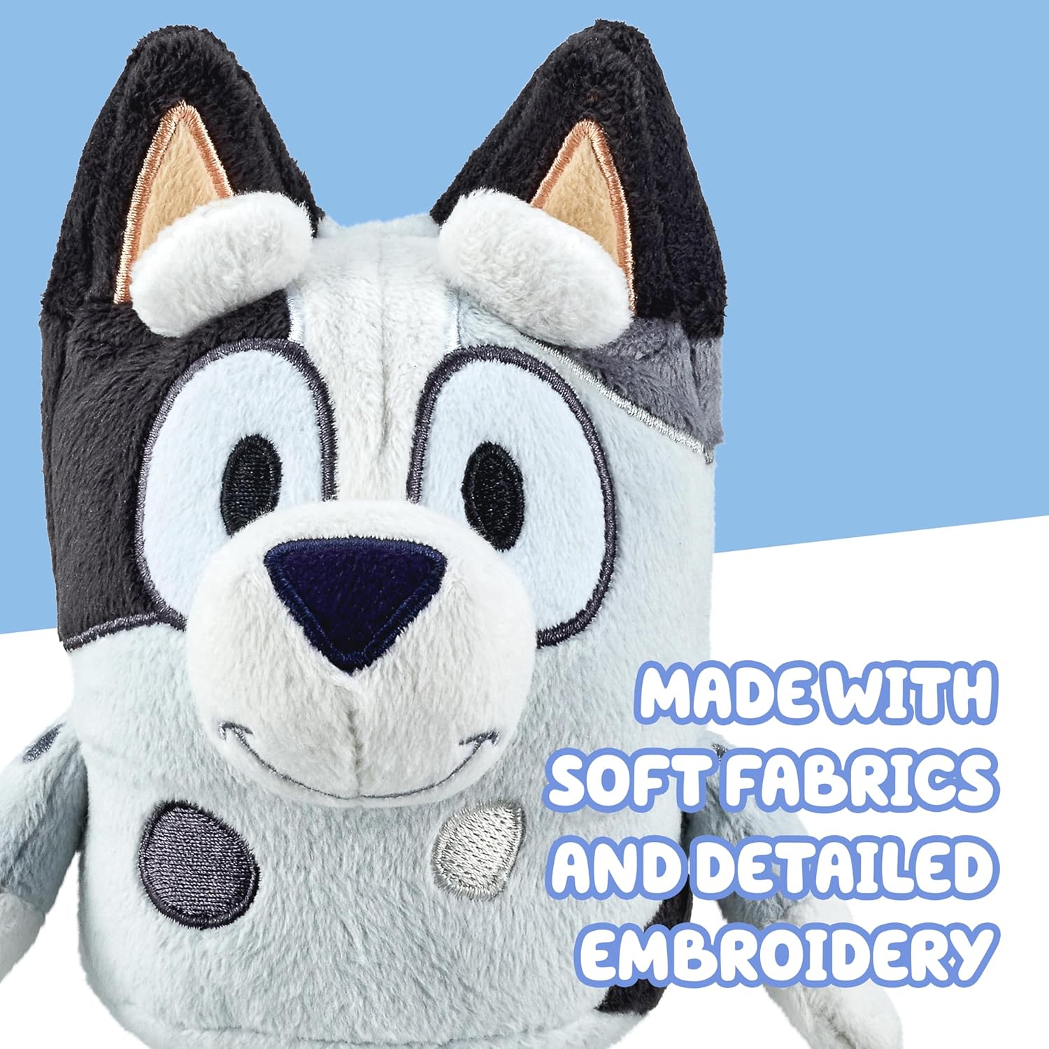 Bring home everyone’s favorite cousins with this Bluey Friends plush bundle – Muffin & Socks! At 7.5″ – 8″ tall, they’re the perfect size for your little one to cuddle and take anywhere. Made with deluxe fabrics and featuring embroidered details, these super-soft plush double as cuddly toys for showtime or storytime. Collect all of Bluey’s plush friends to create your own adventures.