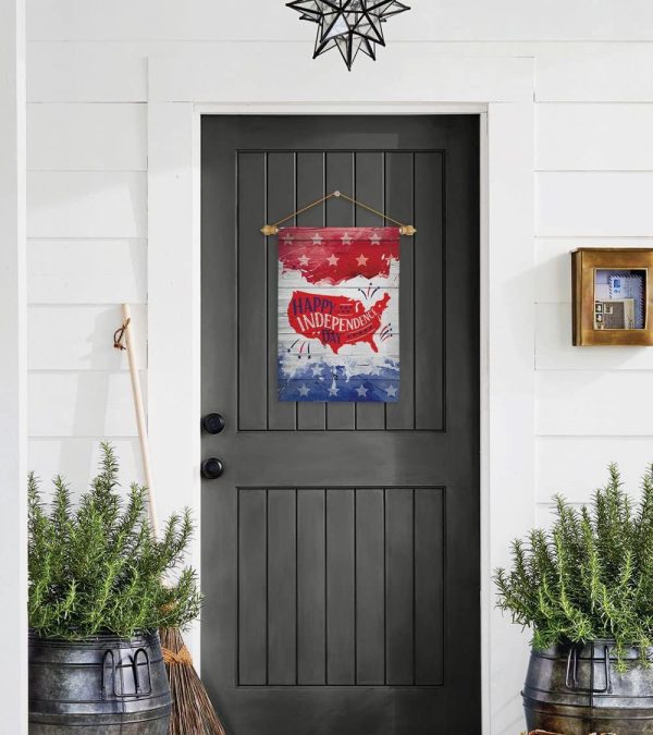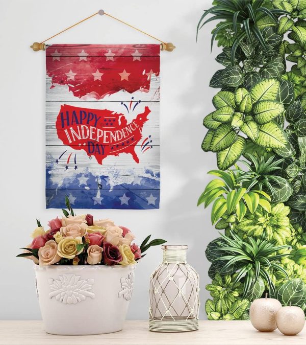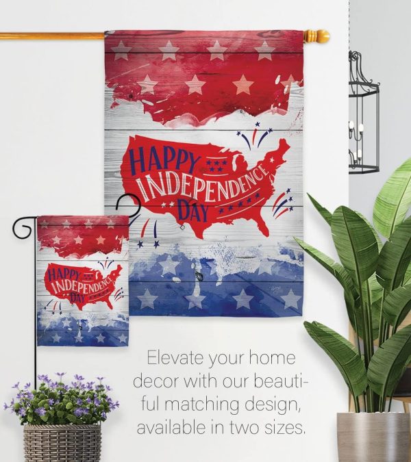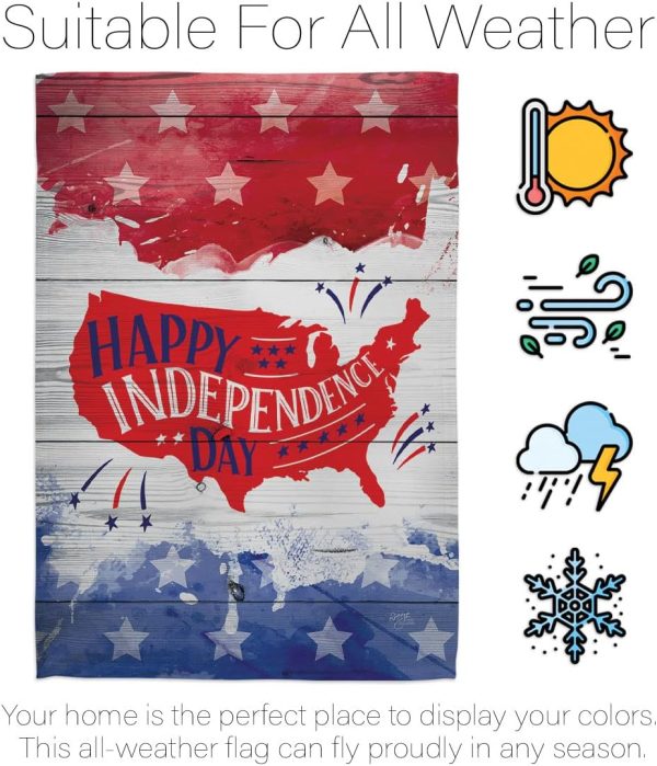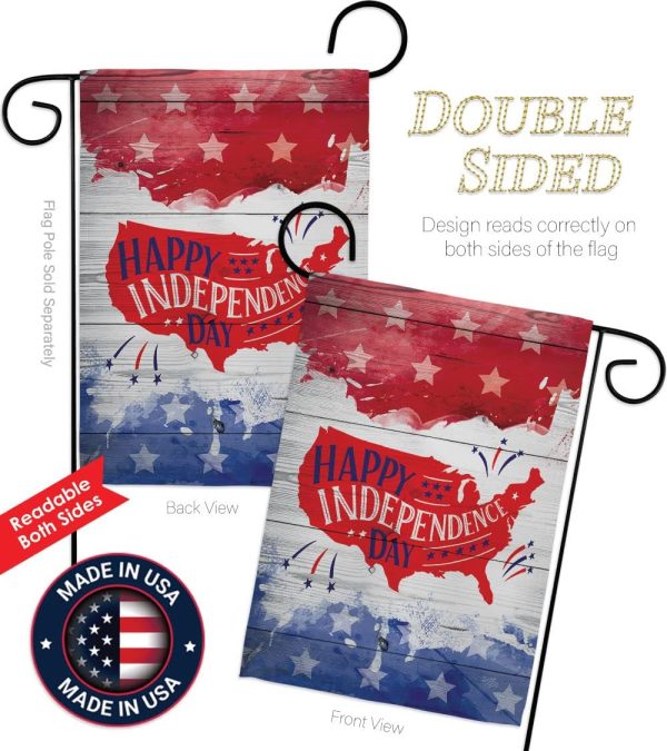 Breeze Decor Happy United State Garden Flag Set Dowel Patriotic Fourth of July Independence Day Fireworks BBQ American House Decoration Banner Small Yard Gift Double-Sided, Made in USA