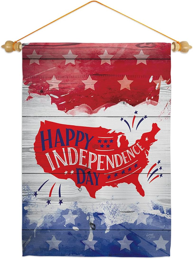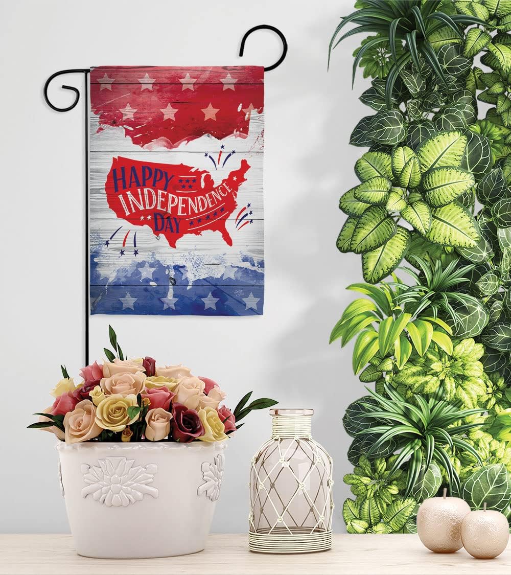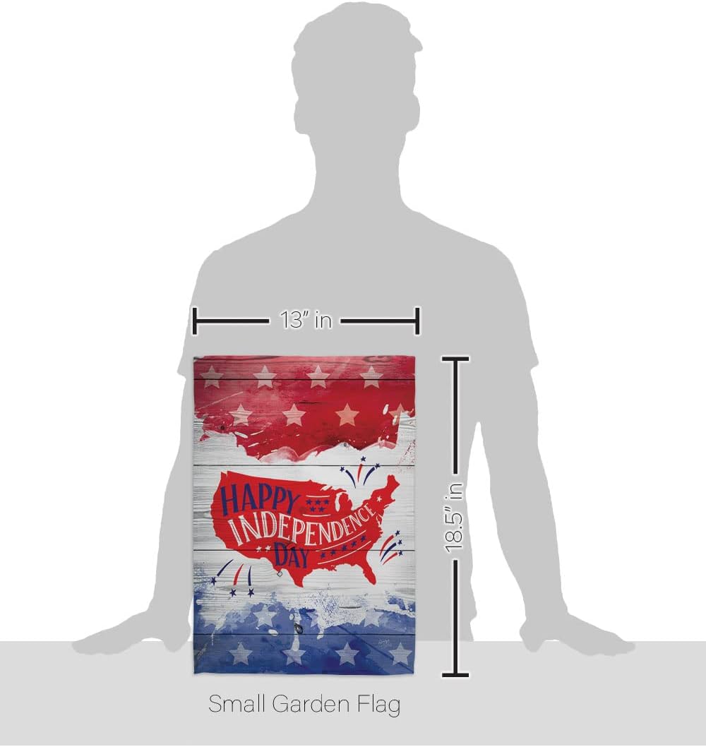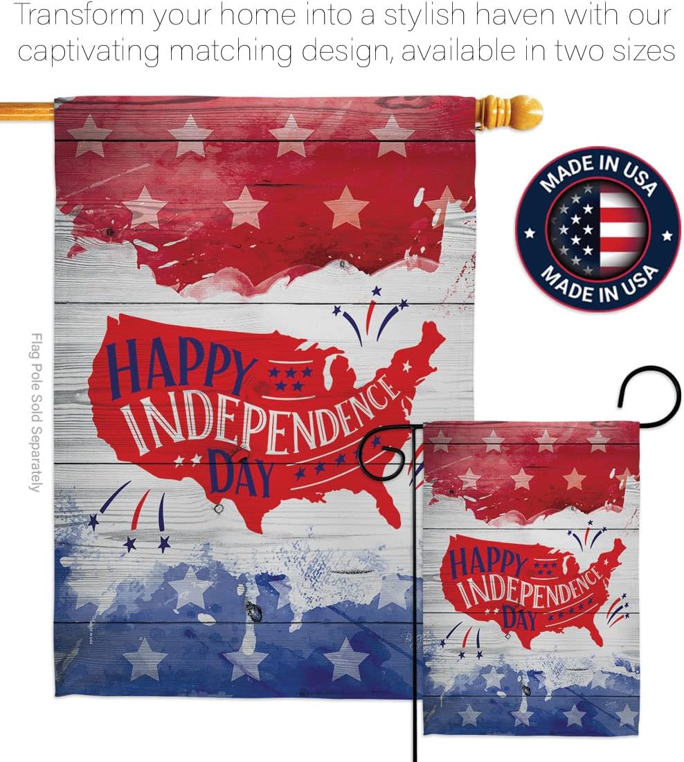 Breeze Decor Happy United State Garden Flag Set Dowel Patriotic Fourth of July Independence Day Fireworks BBQ American House Decoration Banner Small Yard Gift Double-Sided, Made in USA