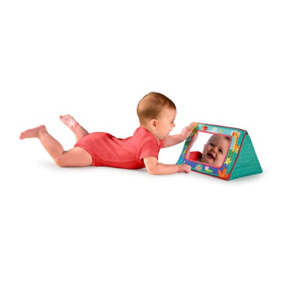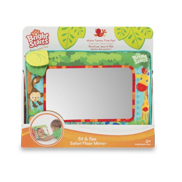Sit and See Safari Floor Mirror from Bright Starts is perfect for a tummy time expedition! Babies love discovering themselves in this colorful fabric frame. The leaves have a 3D crinkle effect and this little mirror folds flat, making it perfect for on-the-go.