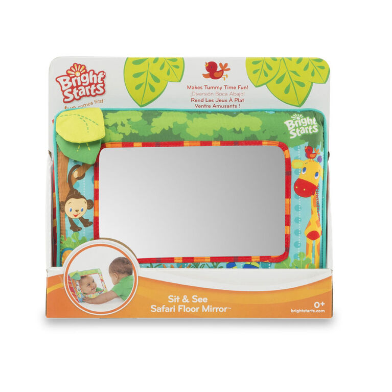 Sit and See Safari Floor Mirror from Bright Starts is perfect for a tummy time expedition! Babies love discovering themselves in this colorful fabric frame. The leaves have a 3D crinkle effect and this little mirror folds flat, making it perfect for on-the-go.