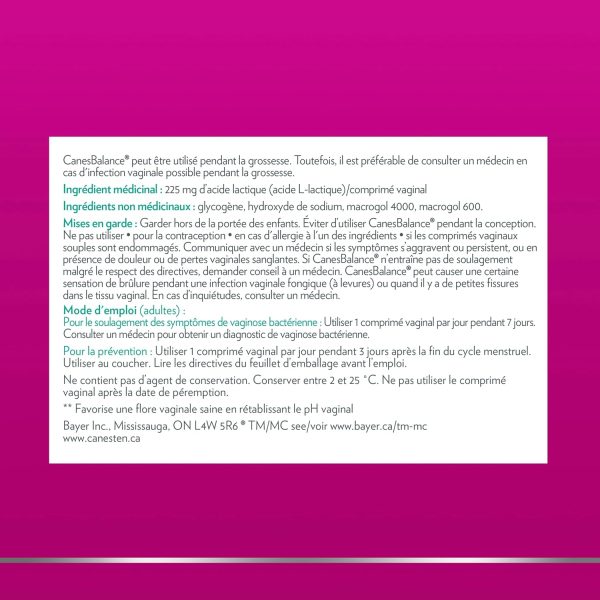 - CanesBalance is Canada's Best Selling Bacterial Vaginosis Brand – From the makers of Canesten. Millions of Canadian women trust Canesten to help them understand, prevent and treat common intimate conditions.