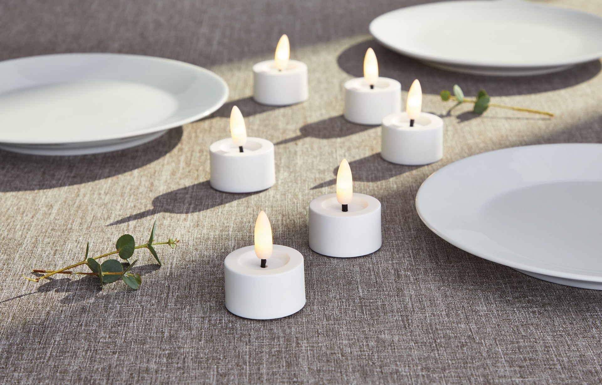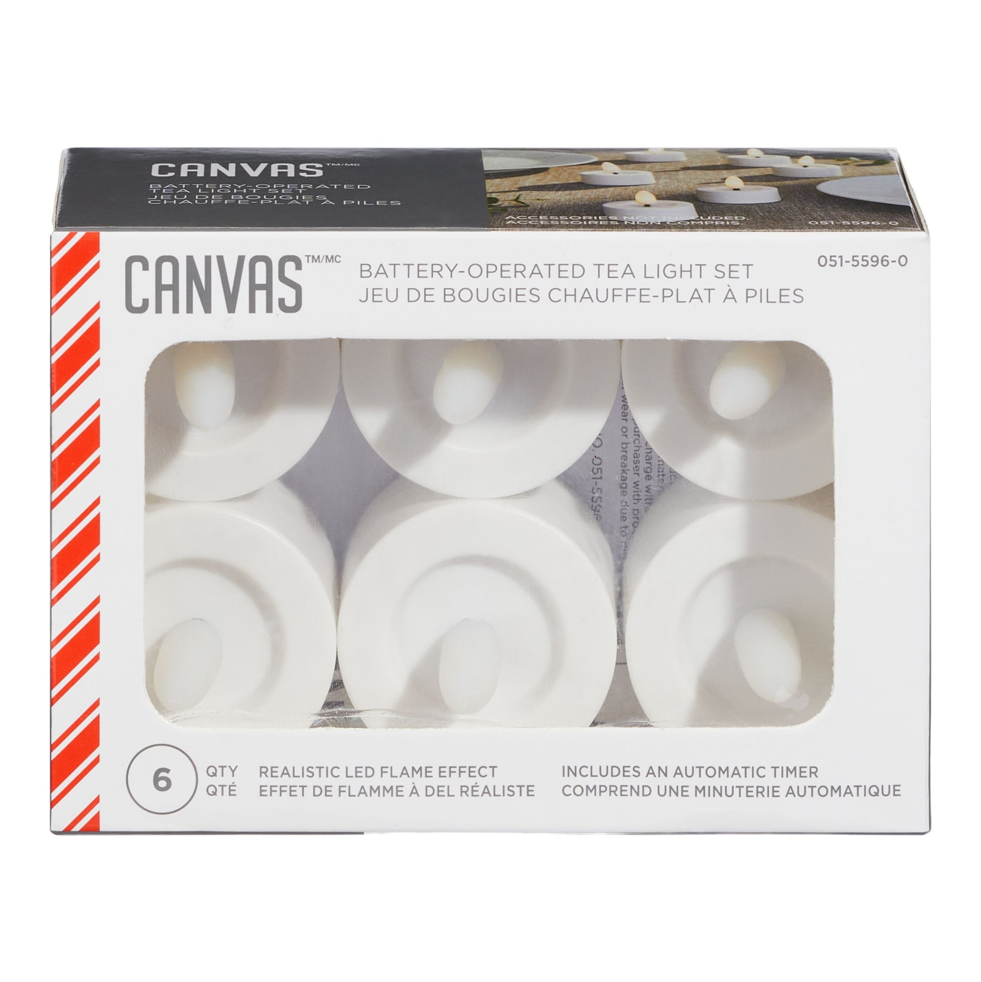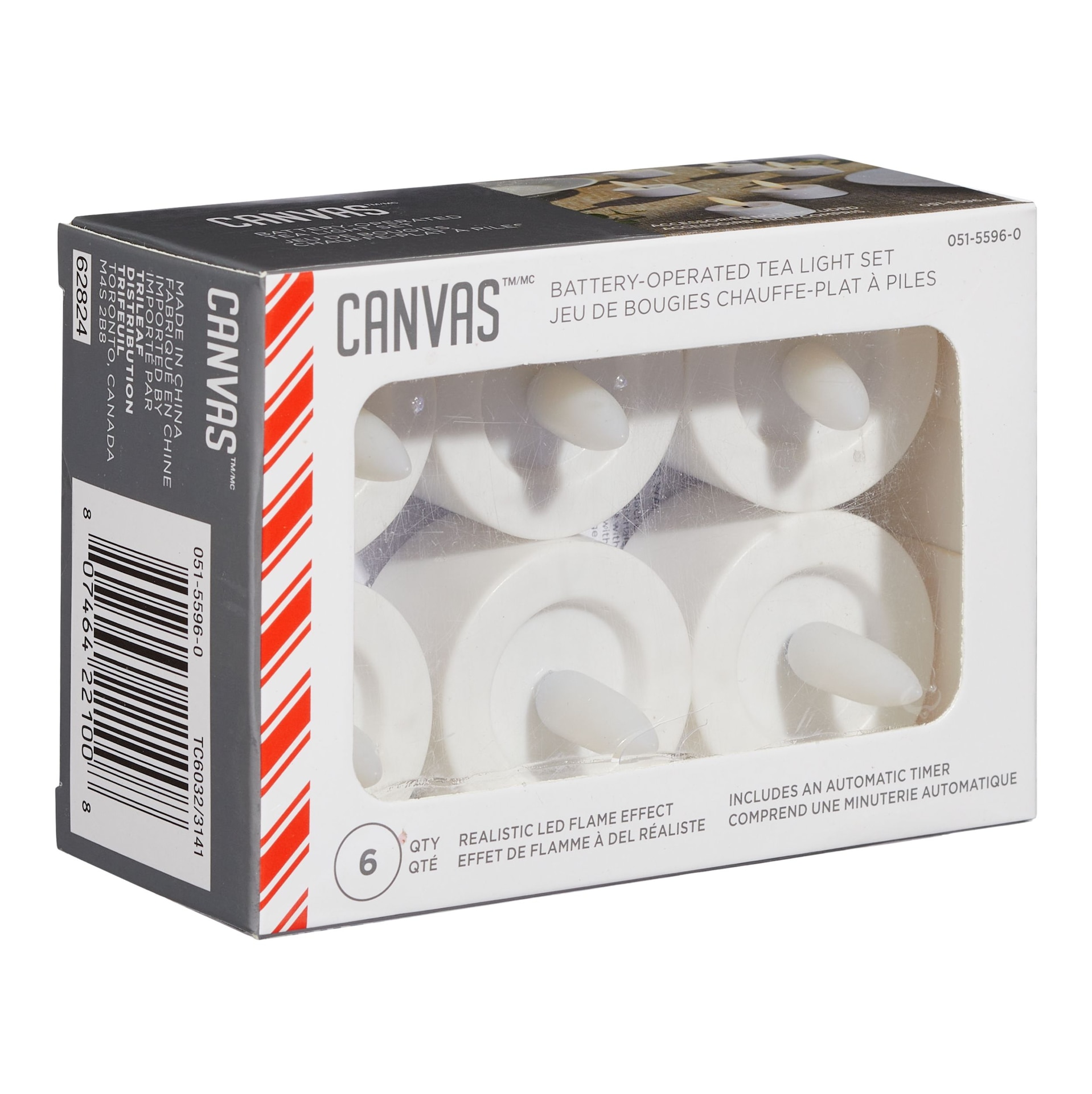 The CANVAS Battery Operated LED Candle Set creates a realistic flame effect, making it a bright addition to your holiday decor. Each of the 6 tealights features a timer that you can set according to the occasion. These tealight candles are ideal for weddings, birthdays, Christmas, and other special occasions.