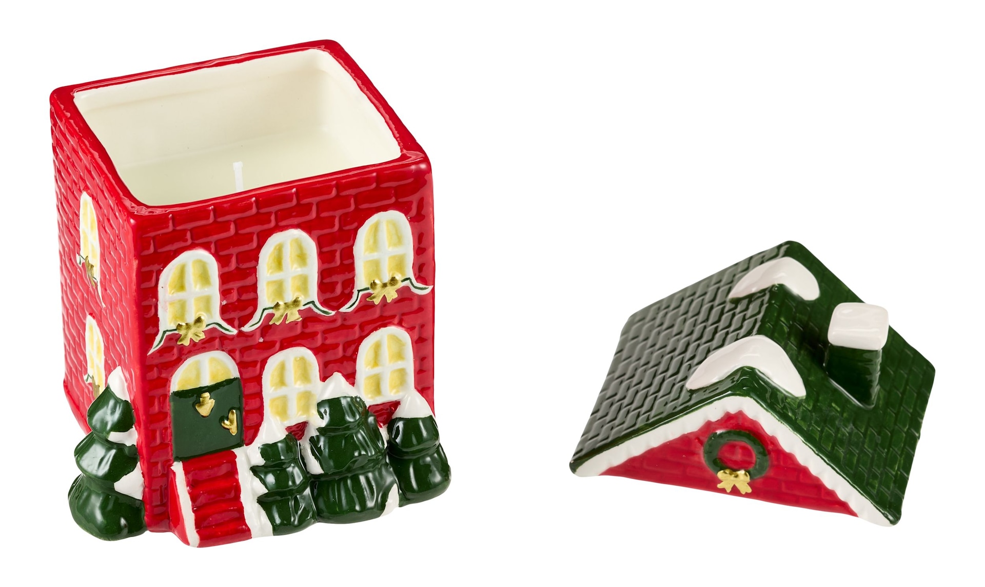 CANVAS Canadian Christmas Collection Red Ceramic House with Lid Scented Candle, 5-in, 220-g