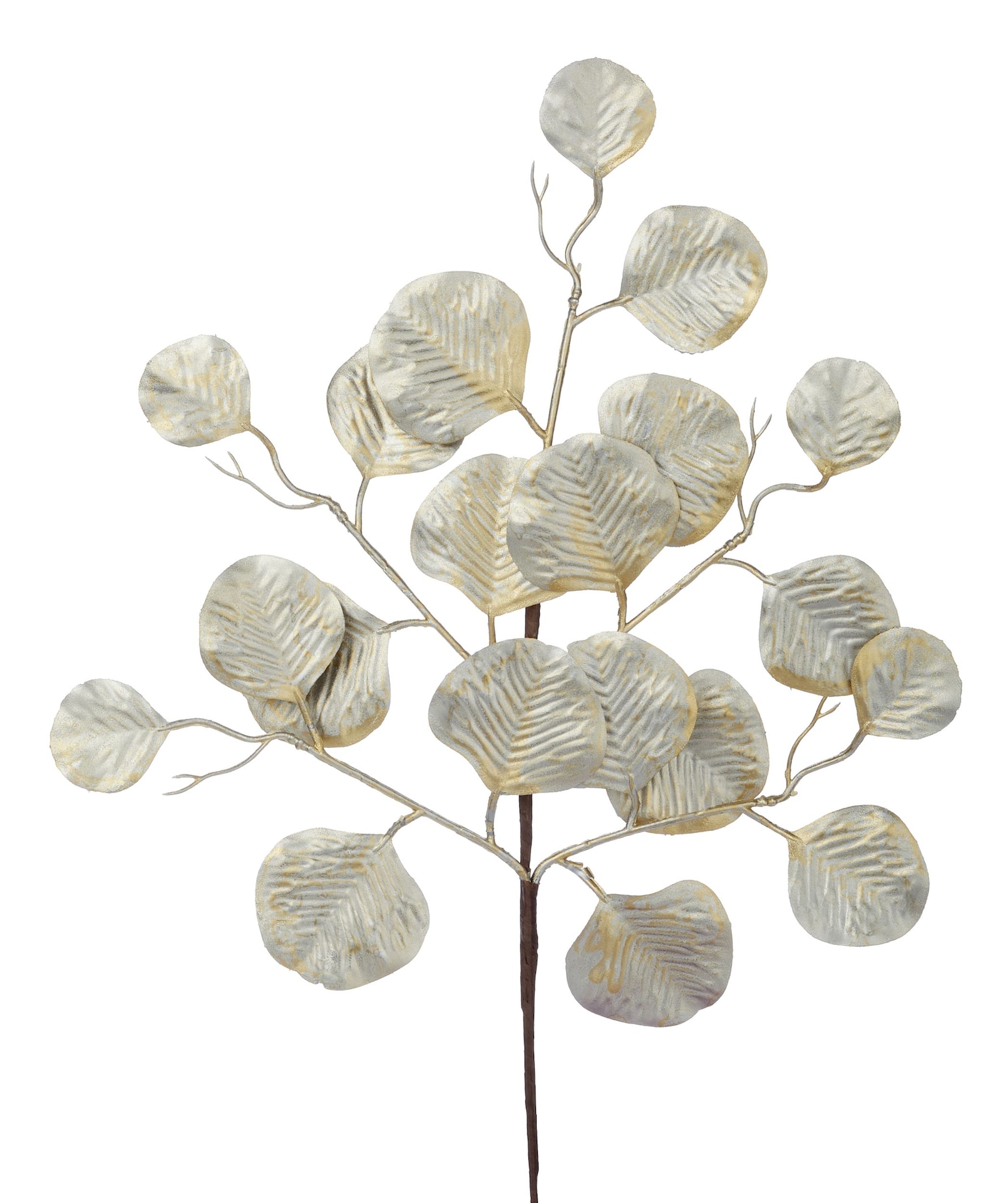 Add a touch of elegance to any space with the CANVAS Champagne Silver Dollar Spray. This decorative accent features shimmering champagne-coloured silver dollar leaves that make a glamorous statement. Though lovely, this spray is for indoor use only. Place in a vase or jar to infuse living areas, dining rooms and more with gilded glamour. With its chic metallic sheen, this silvery spray brings flair to shelves, console tables, bookshelves, and more. Conveniently accent your home with this glamorous silver leaf spray.