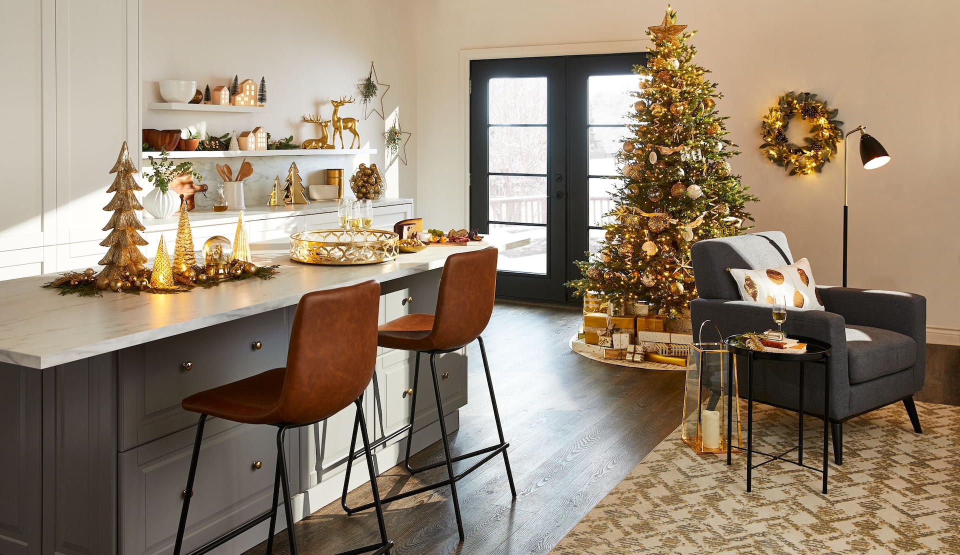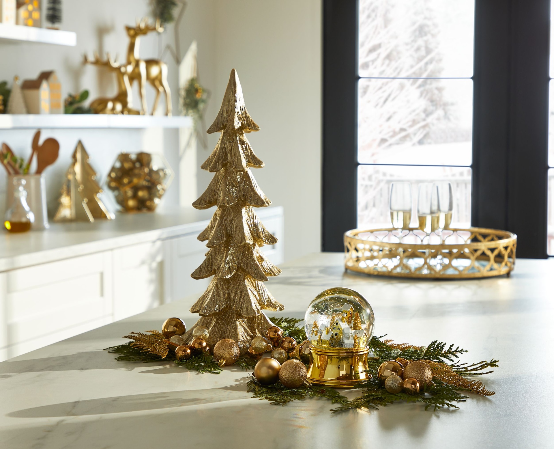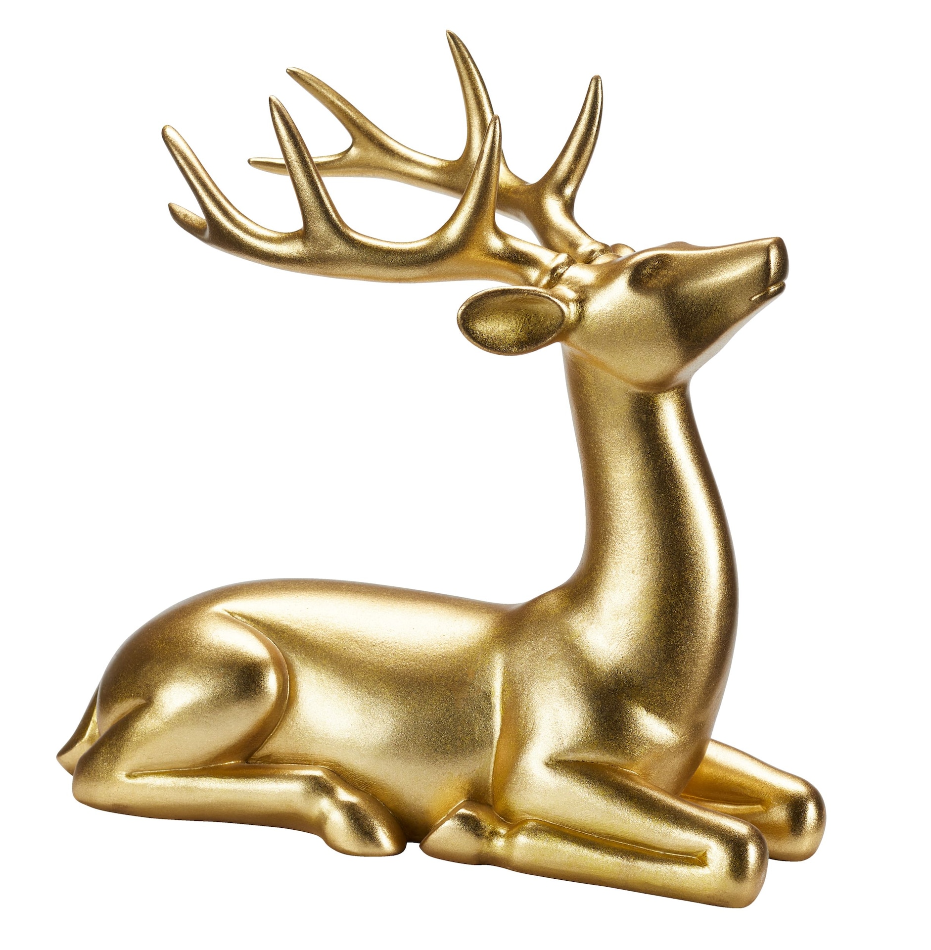 This CANVAS Christmas Sitting Deer Decor is an elegant and stylish addition to your holiday decor. The 10.5-in. Christmas deer becomes an instant focal point, adding a graceful presence to dinner settings, mantelpieces and bookshelves during the festive season. The handsome design and golden sheen of this table top deer will make it a family favourite for years to come. Stand it alone or display in a pair.