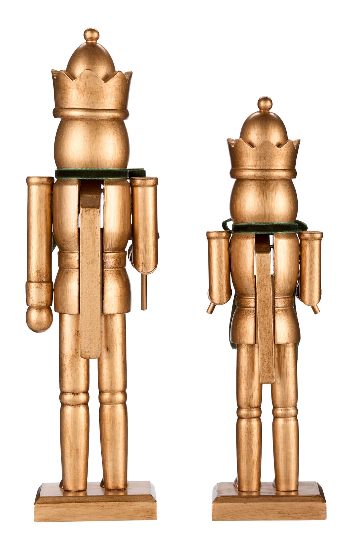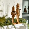 Enhance your holiday décor with the CANVAS Holiday Homecoming Collection Antique Brass Nutcracker set. These elegant nutcrackers, featuring a charming green bow detail, bring a touch of warmth and sophistication to any indoor space. Perfect for creating a festive atmosphere, this set includes two beautifully crafted pieces in different sizes.