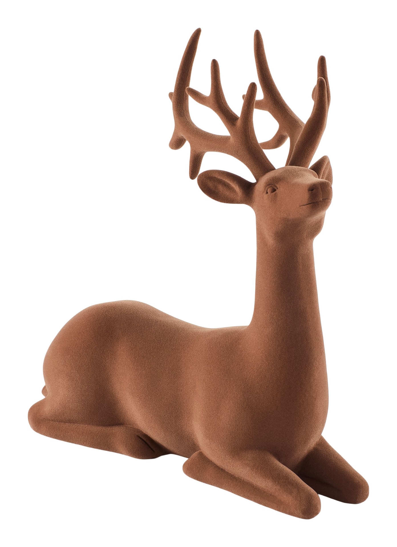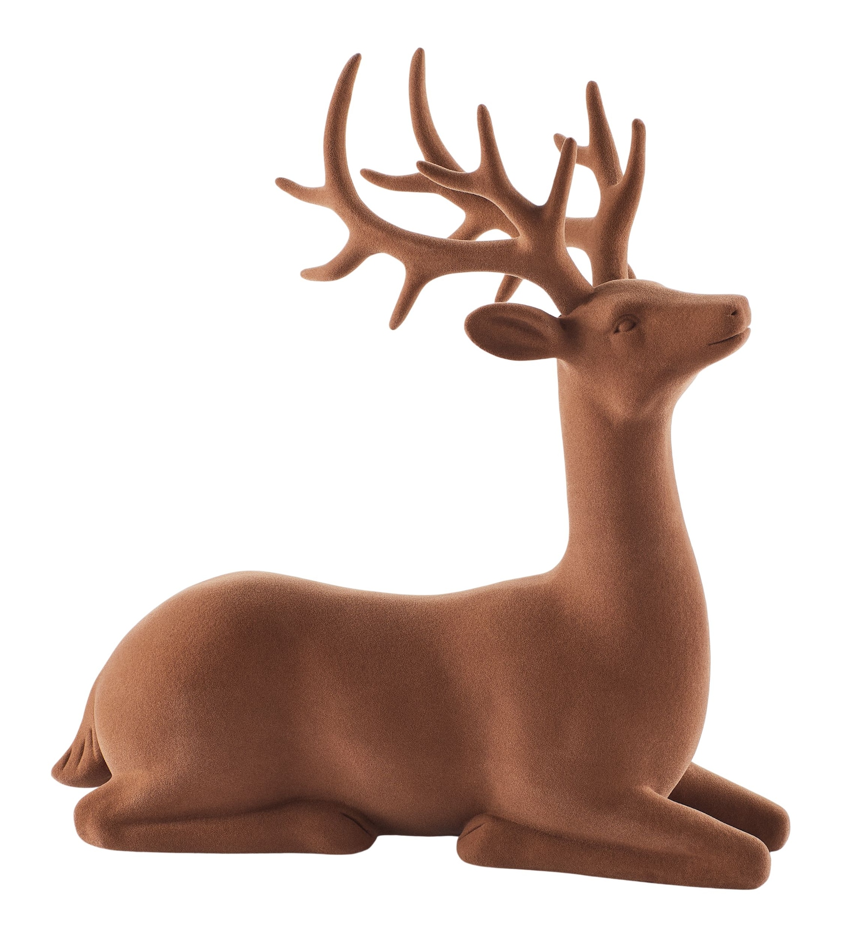 Enhance your holiday décor with the CANVAS Holiday Homecoming Collection Christmas Decoration. This charming brown flocked sitting deer adds a touch of elegance and warmth to your indoor spaces, creating a festive atmosphere for the season.