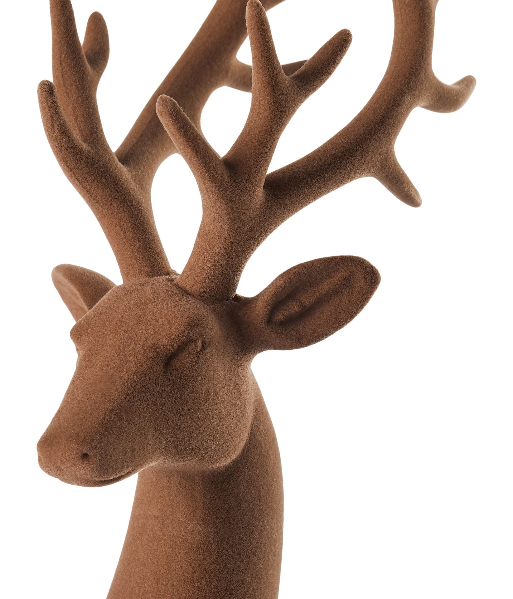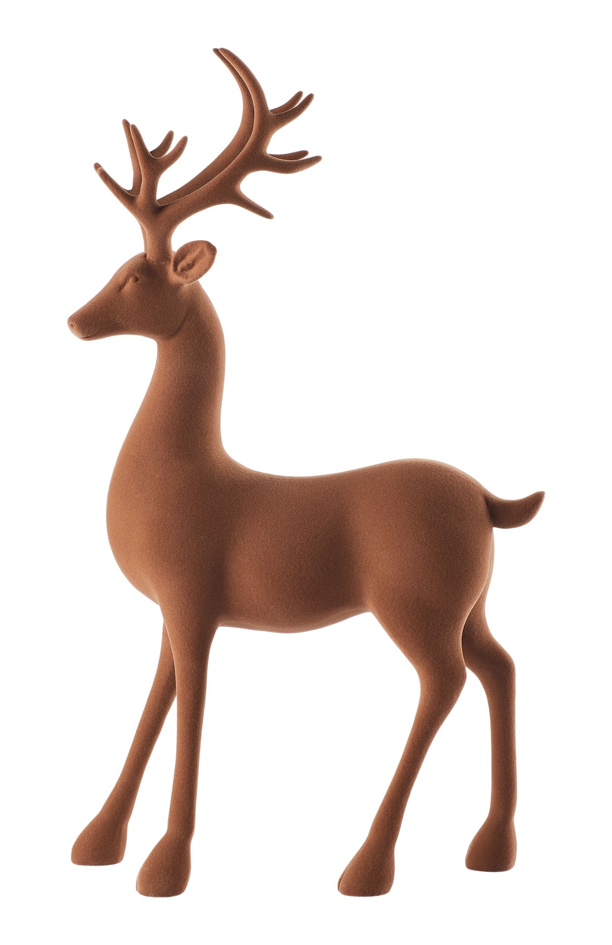 Enhance your holiday décor with the charming CANVAS Holiday Homecoming Collection Christmas Decoration. This delightful brown flocked standing deer adds a touch of elegance and warmth to any indoor setting, making it a perfect addition to your festive decorations.
