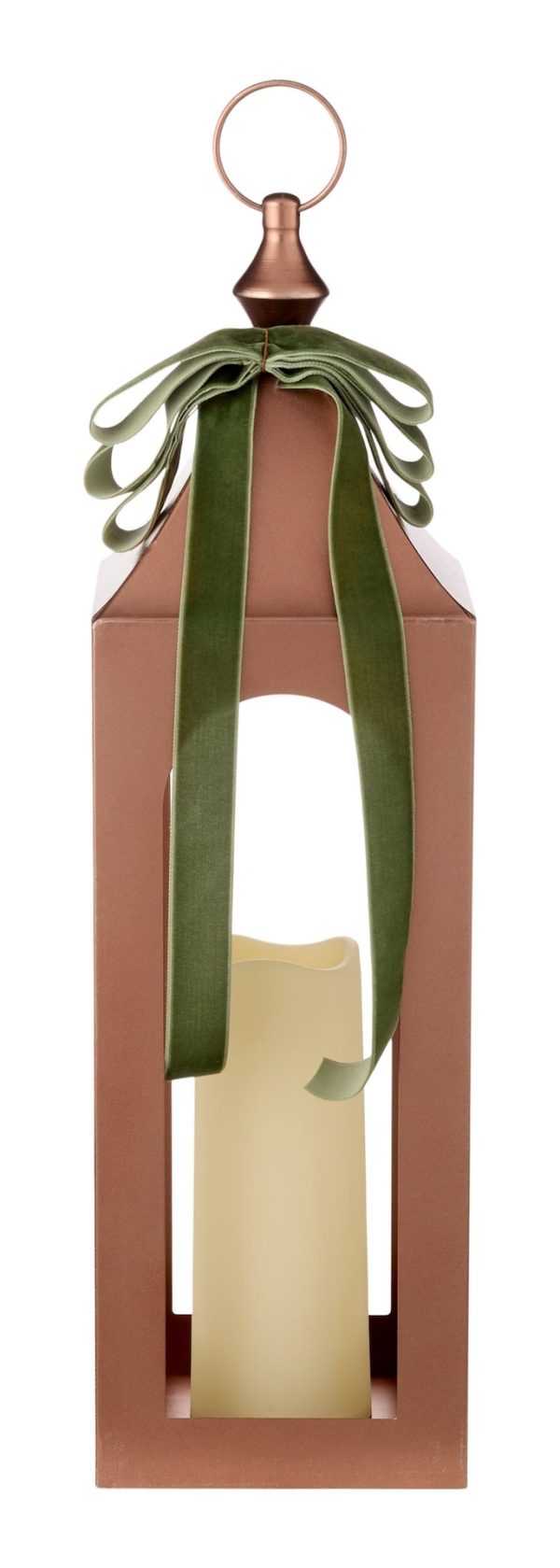 Enhance your holiday decor with the CANVAS Holiday Homecoming Collection Copper Lantern. This elegant lantern features a warm white LED candle, creating a cozy and inviting atmosphere. Perfect for any space, it adds a touch of festive charm to your home.