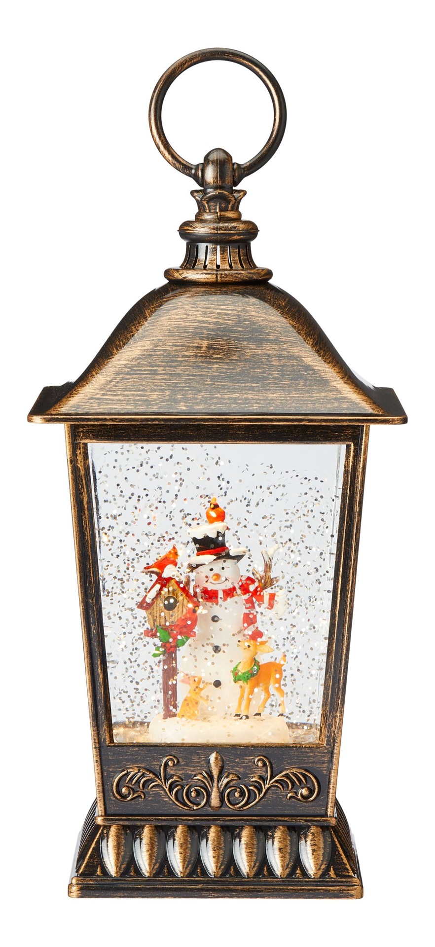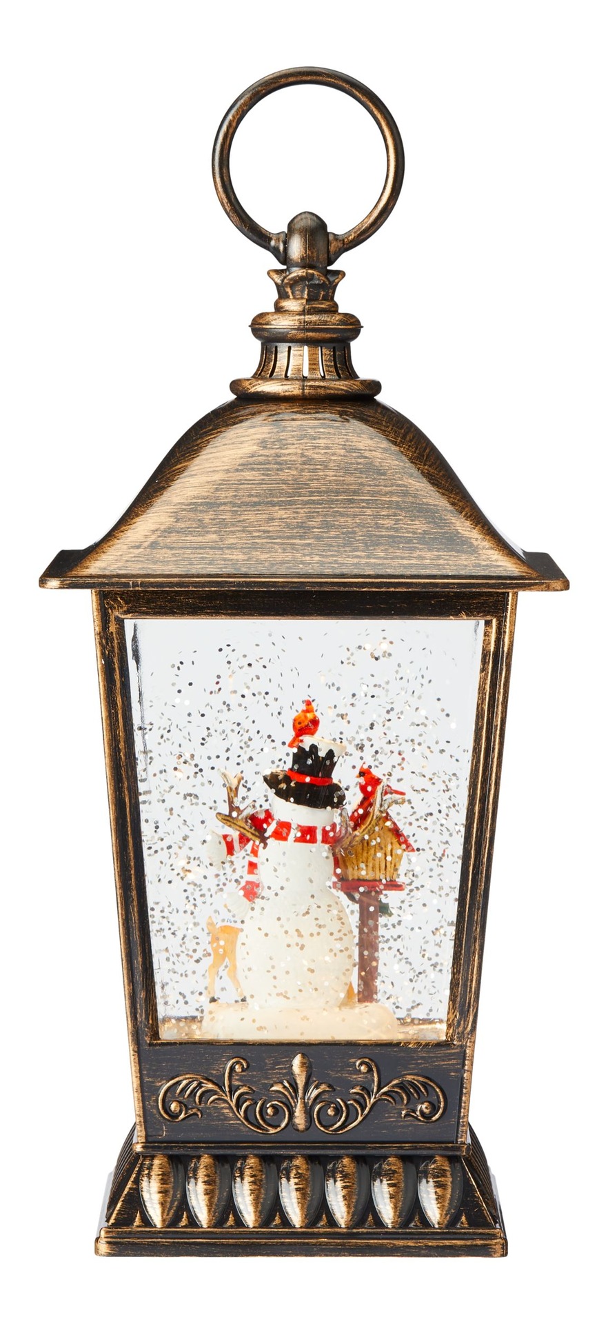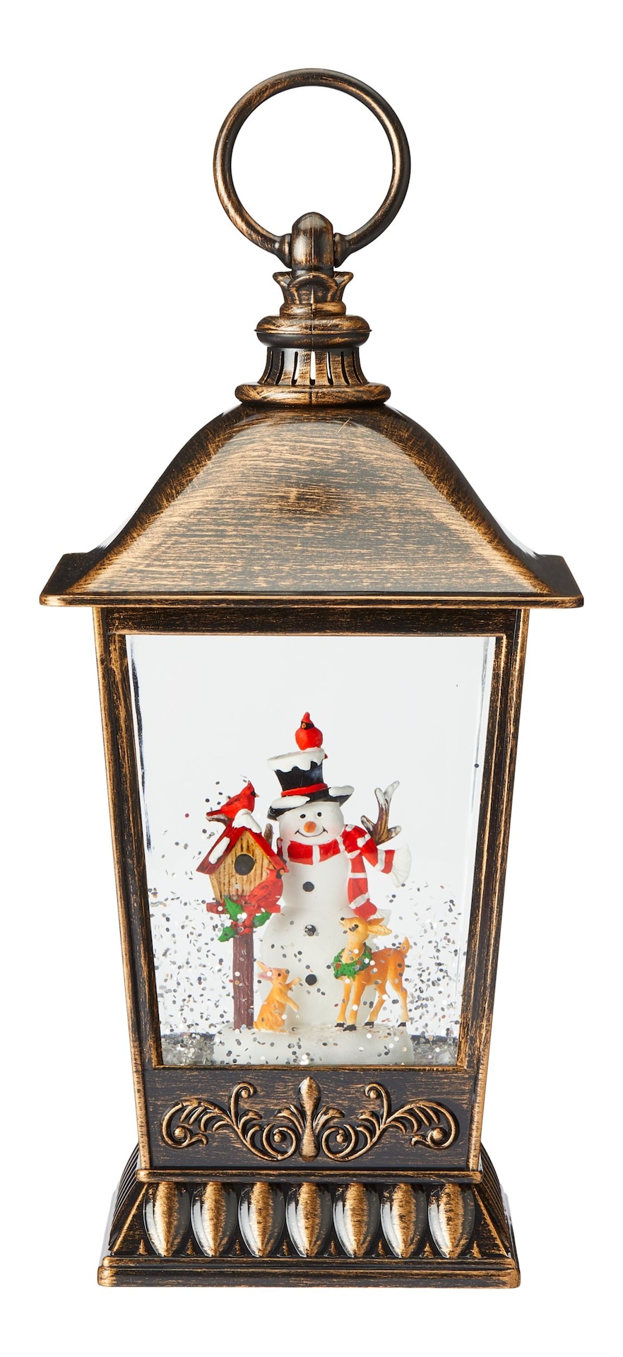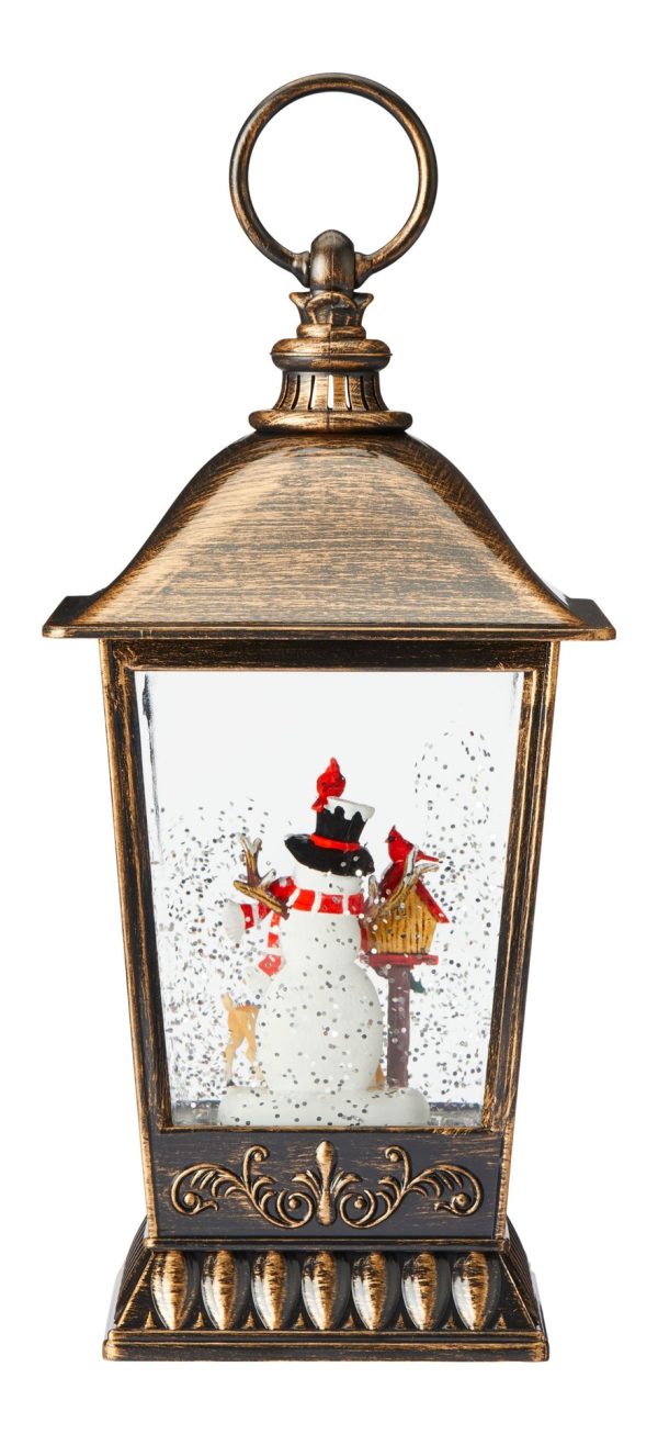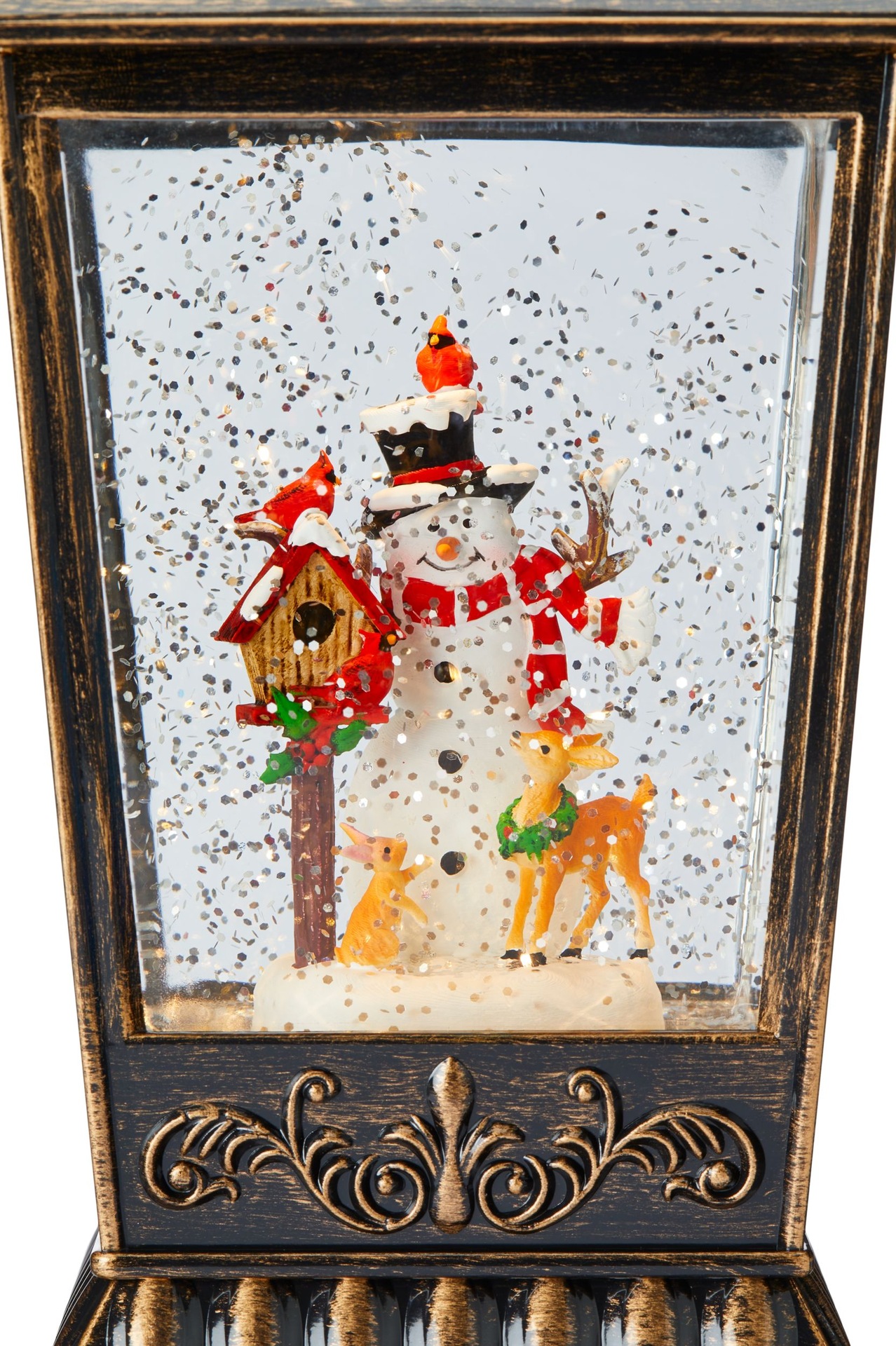 The CANVAS LED Glitter Snow Globe features a charming scene of a snowman and cardinal. Battery-operated with an LED light that illuminates the scene, this globe is perfect for lighting up your holiday décor.