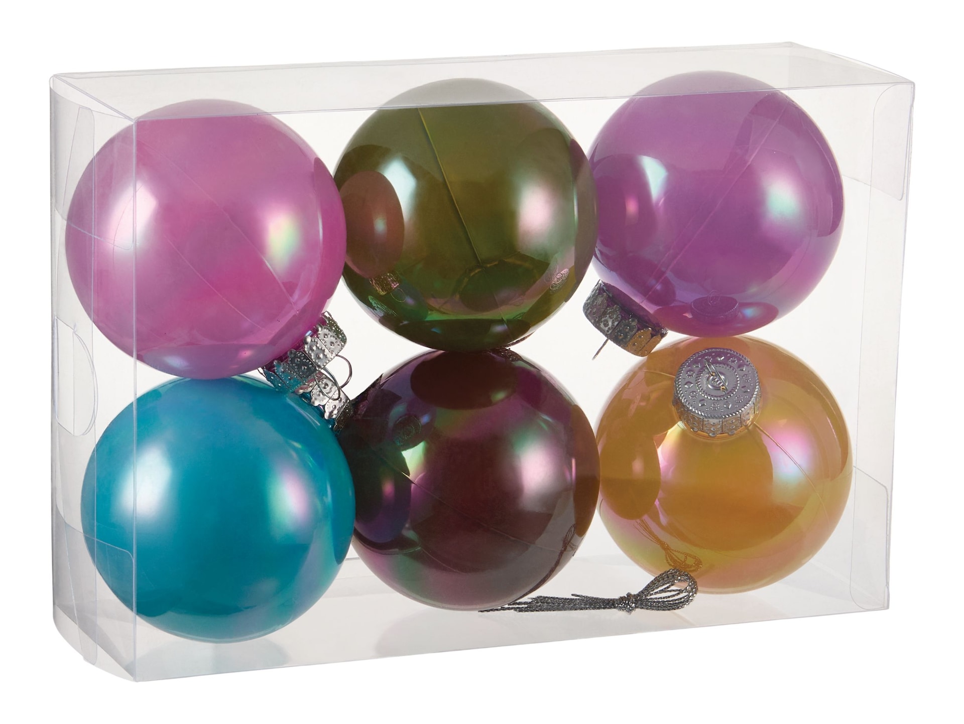 CANVAS Merry Mingle Collection Iridescent Shatterproof Christmas Ornamen Set, 80-mm, 6-pc
