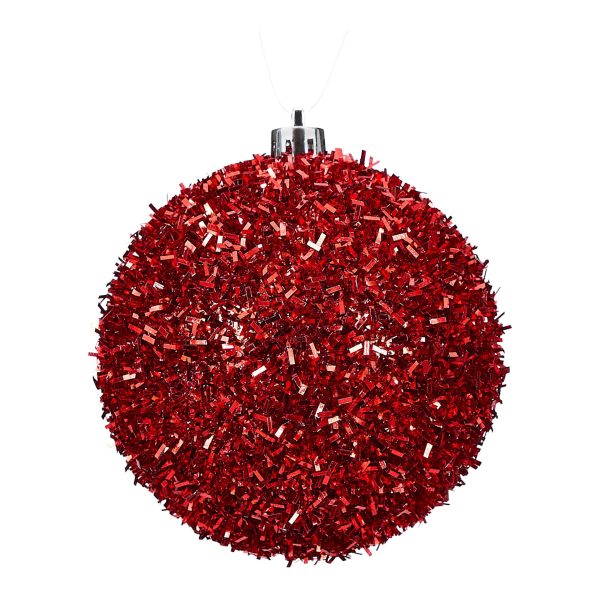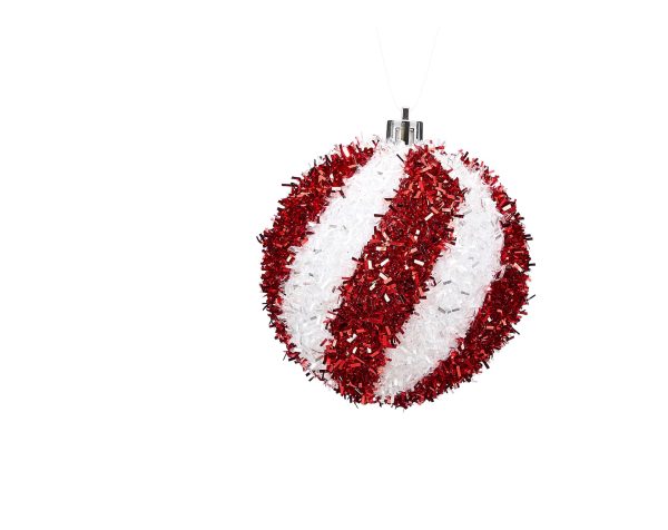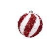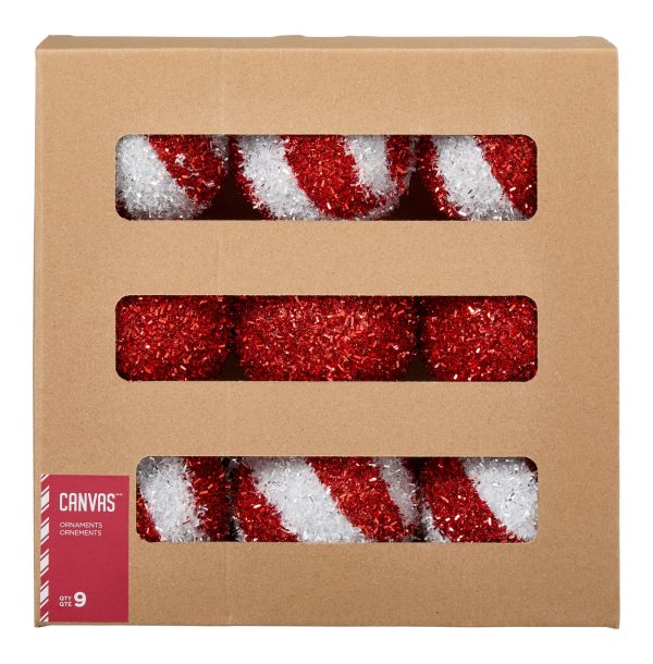 CANVAS Santa’s Workshop Collection Red and White Tinsel Shatterproof Ball, 80-mm, 9-pc