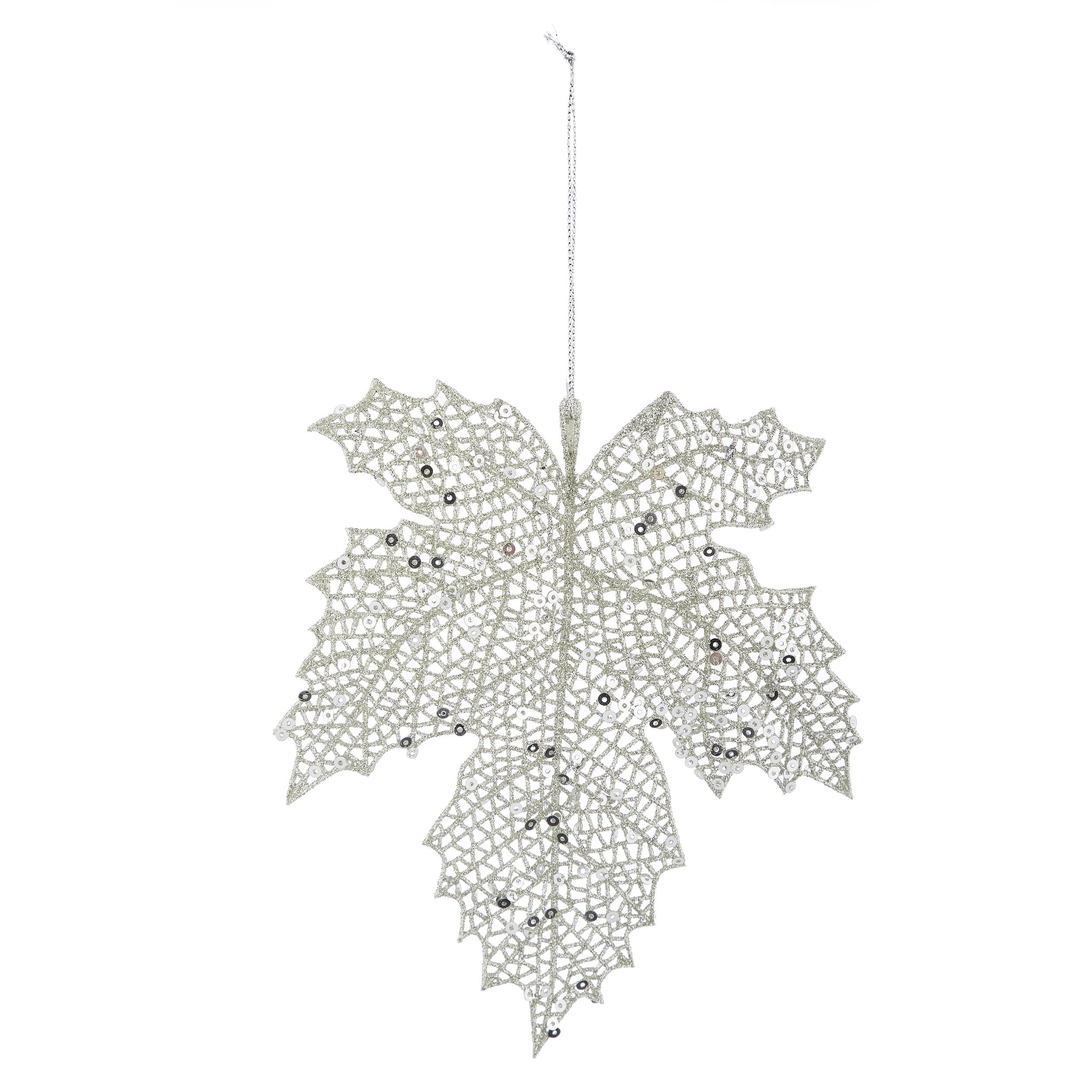 The lacy and intricate CANVAS Metallic Maple Leaf Ornament is a decorative addition that will strike a patriotic chord this holiday season. The ready-to-hang maple leaf ornament is made of lightweight plastic, features a silver motif and is dotted with sequins to capture light from all directions. Use it to complement your traditional Christmas tree style as well as on-trend white or multi-coloured themes. The metallic leaf is a standout element in Christmas craft projects.