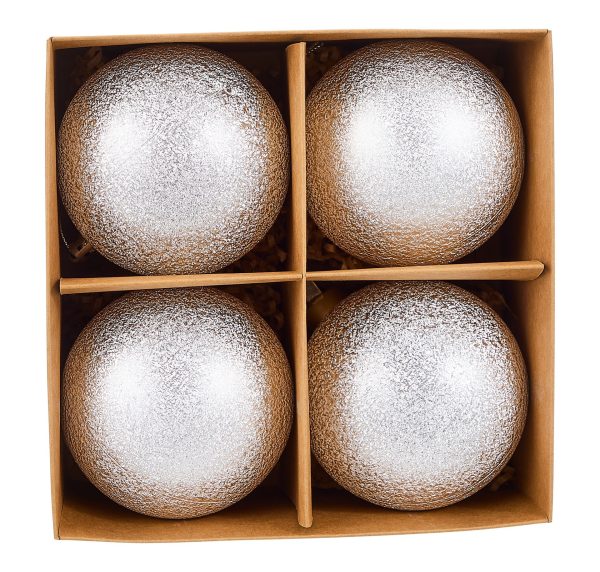CANVAS Silver Frost Collection Metal Foil Texture Shatterproof Ball, 80-mm, 4-pc
