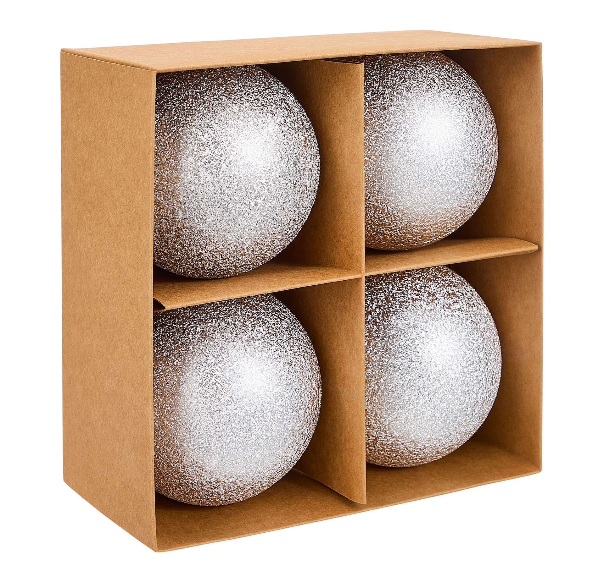 CANVAS Silver Frost Collection Metal Foil Texture Shatterproof Ball, 80-mm, 4-pc