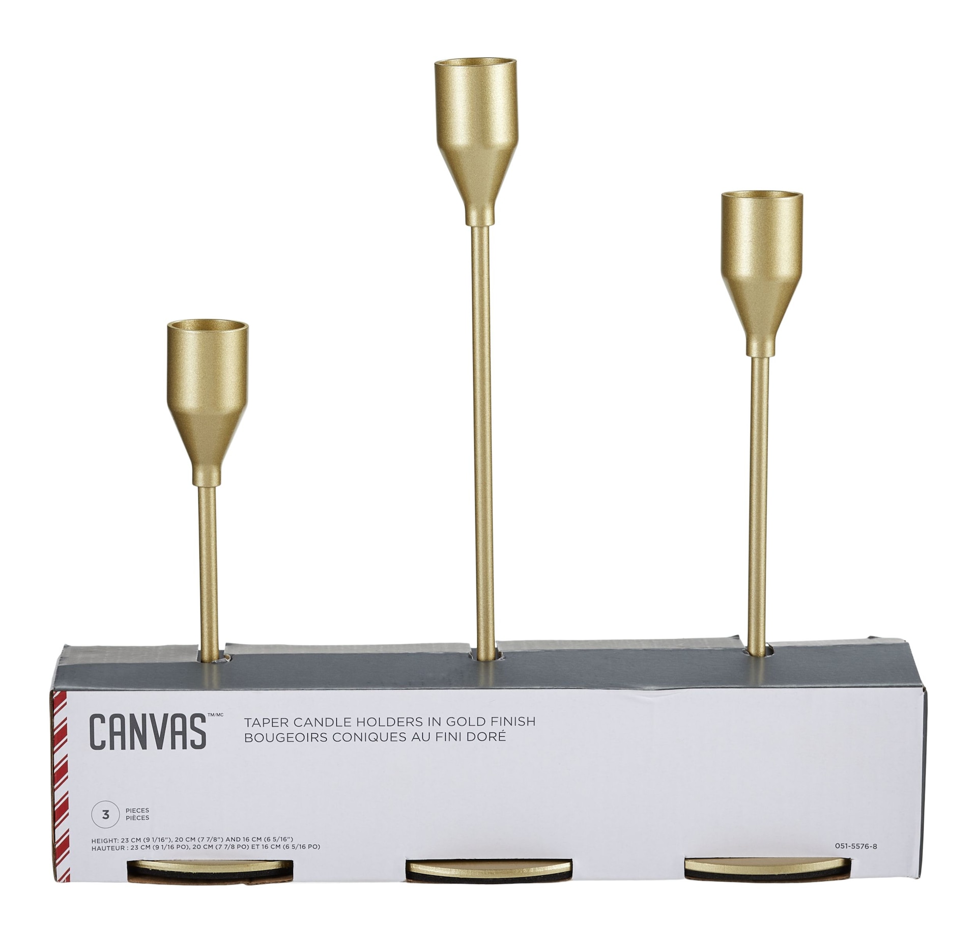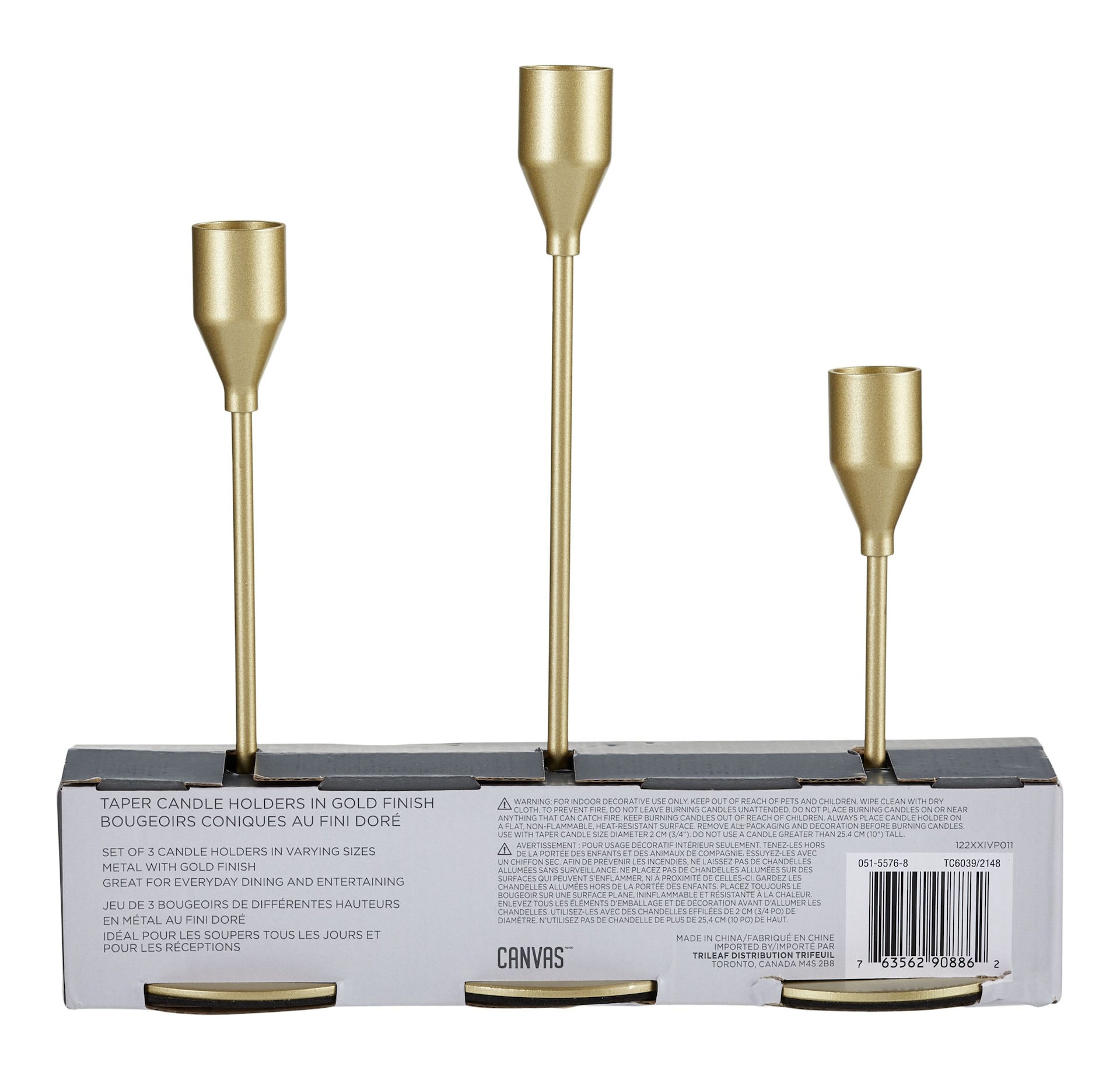 CANVAS Tabletop Christmas Décor Gold Metal Taper Candle Holder, 3-pk