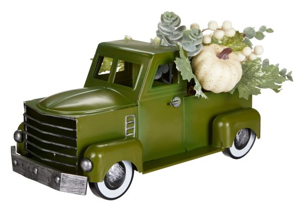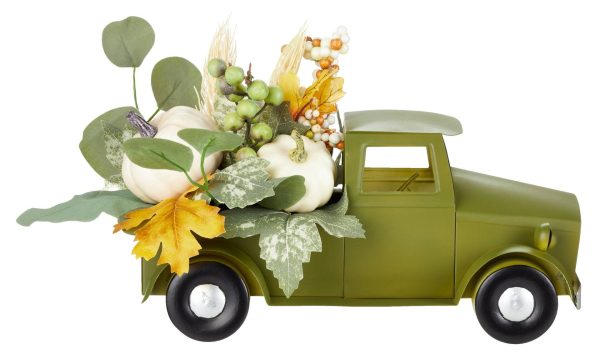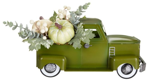 The CANVAS Floral & Pumpkins Truck, Tabletop Fall & Thanksgiving Home Decorations, Green, 8-in, is the perfect fall decoration this season. This small living room fall decor merges well with your other icons and evokes a welcoming feel. Ideal for indoor space, you can place it on the dining table, console table, mantle, and more. The fall truck decor features beautiful artificial flowers and small white pumpkins to add a festive touch to your fall decor. Creating a nice, beautiful look, the pumpkin truck decor measures 8 inches (20.3 cm) in length.