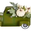 CANVAS Tabletop Truck with Florals & Pumpkins, Green, 8-in, Indoor Decoration for Fall