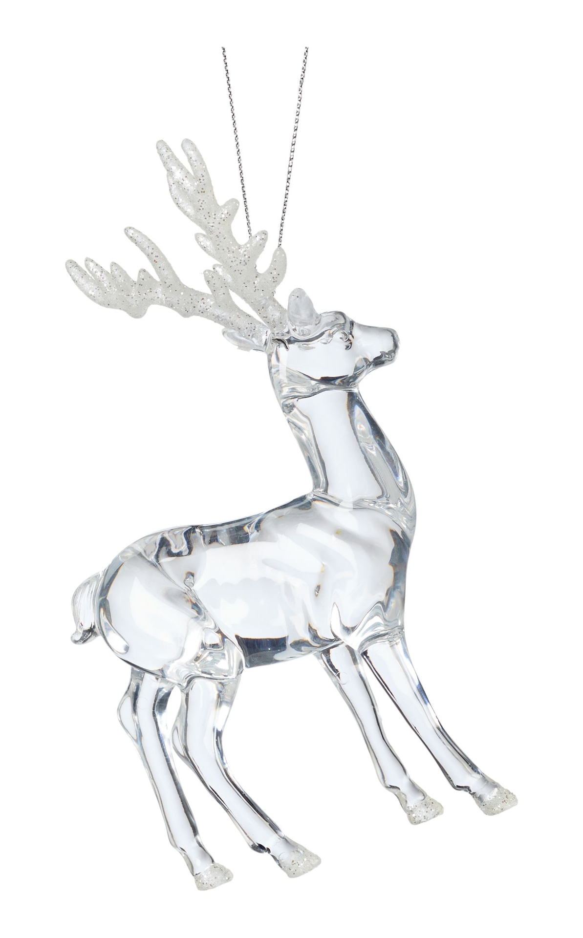 Add a touch of elegance to your holiday decor with the CANVAS Clear Deer Ornament. Featuring glittering antlers, this ornament brings a festive sparkle to your Christmas tree. Perfect for creating a winter wonderland theme, it is a beautiful addition to any seasonal collection.