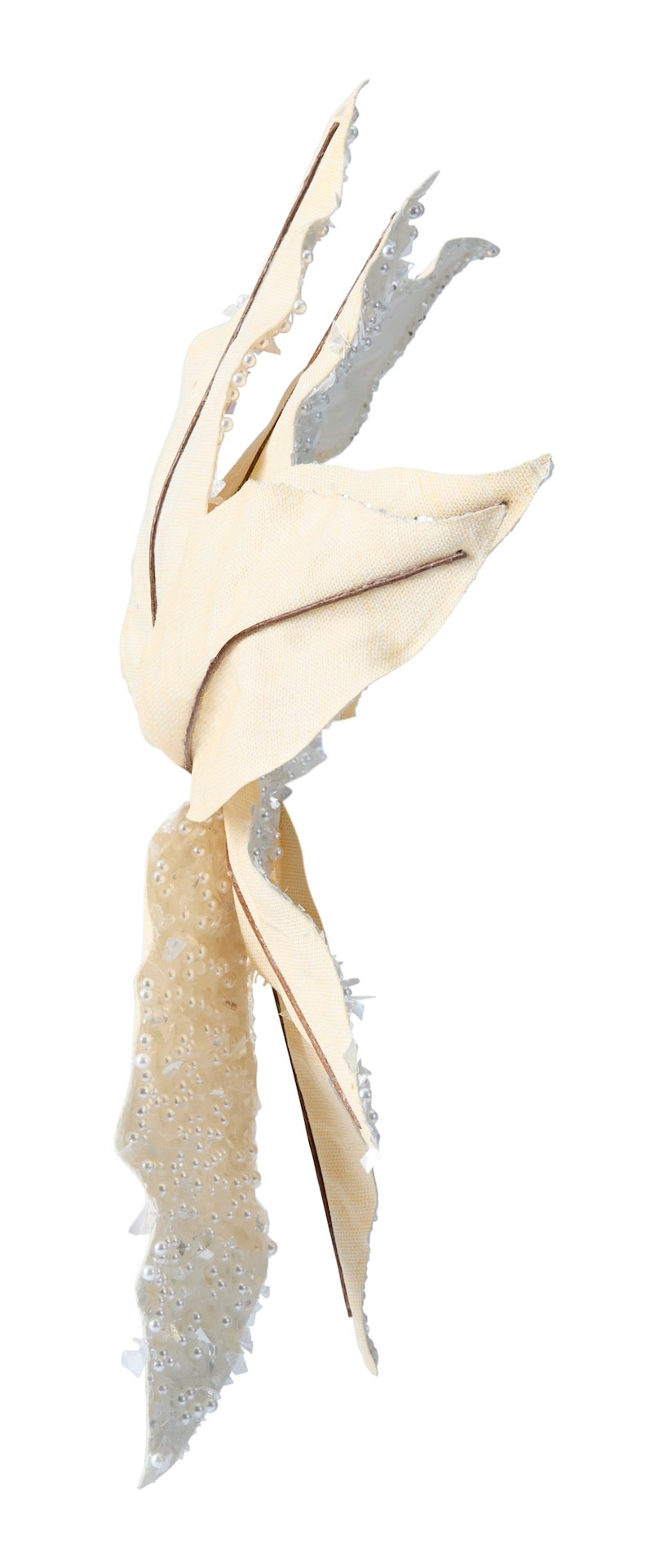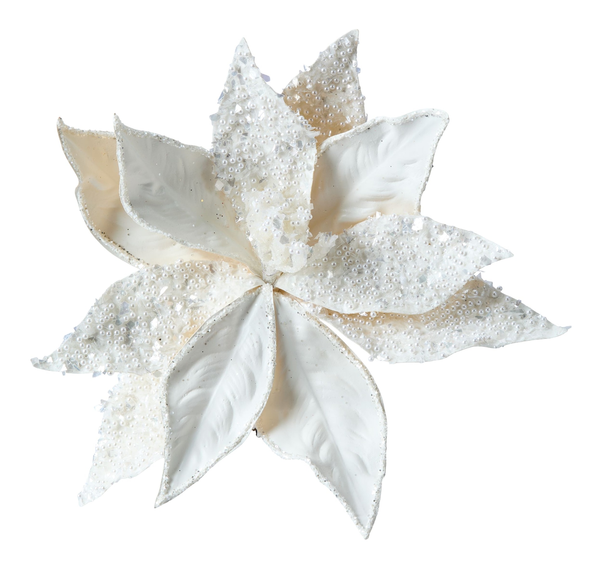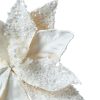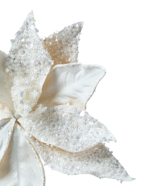 Enhance your holiday decor with the elegant CANVAS Fabric Poinsettia Clip with Pearls Ornament. This beautiful flower clip ornament, part of the CANVAS White Christmas Collection, adds a touch of sophistication to any festive setting. The delicate pearls and acrylic jewels create a stunning visual appeal, perfect for elevating your seasonal decorations.