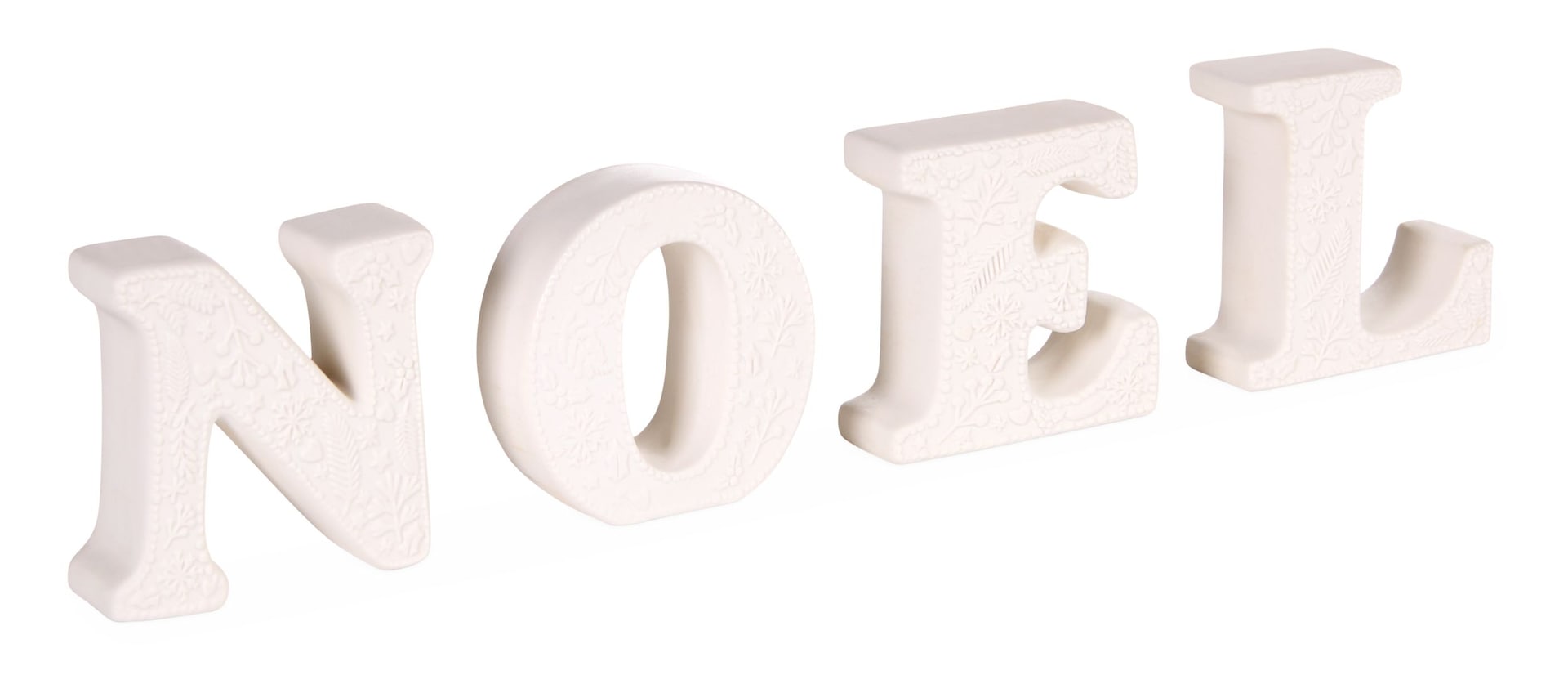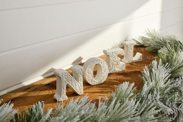 Elevate your holiday decor with the CANVAS White Christmas Collection Matte Porcelain Noel Décor. These elegant letters spell out ‘Noel’ and feature a sophisticated lace-like design, adding a touch of refinement to your festive celebrations. Perfect for creating a stylish and serene Christmas atmosphere.