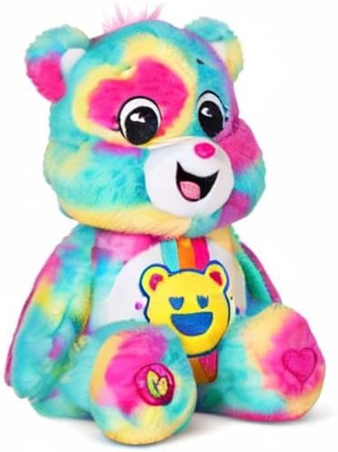 Care Bears 14” Good Vibes Bear- Tie-Dye Multicolored Plushie for Ages 4+ – Perfect Stuffed Animal Support Gift, Super Soft and Cuddly – Good for Girls and Boys, Employees, Collectors