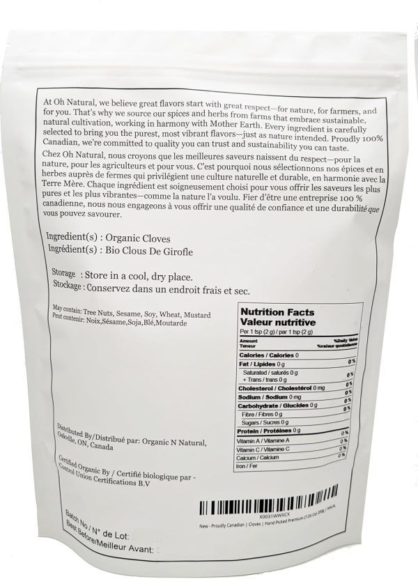 - SUPERIOR FLAVOR – Oh Natural has the best quality cloves from Sri Lanka. It adds not only a PLEASING FLAVOR with its warm, earthy and strong aroma, but it also adds a MOUTHWATERING TASTE to your foods, seasonings, teas and even potpourri.