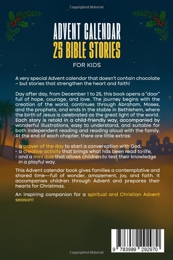 Be the first to review “Christian Advent Calendar Book – 25 Bible Stories for Kids: From Adam and Eve to Jesus – Bible stories for children and the whole family – Perfect for reading alone, as Christmas bedtime stories, or together as a family” Cancel reply