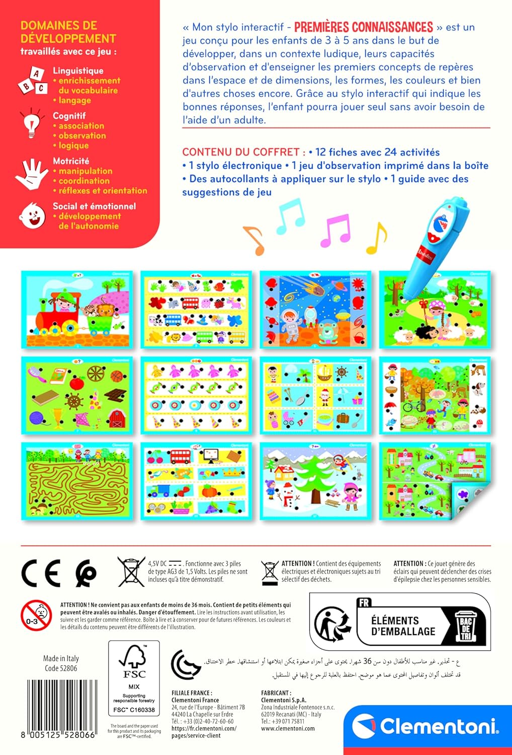Clementoni – Éducation – Mon Stylo Interactif – Premières Connaissances – 24 Activités Éducative -Jeu Interactif Parlant – Développement Pour les Tout-Petits – À partir de 3 Ans – Français – 52806