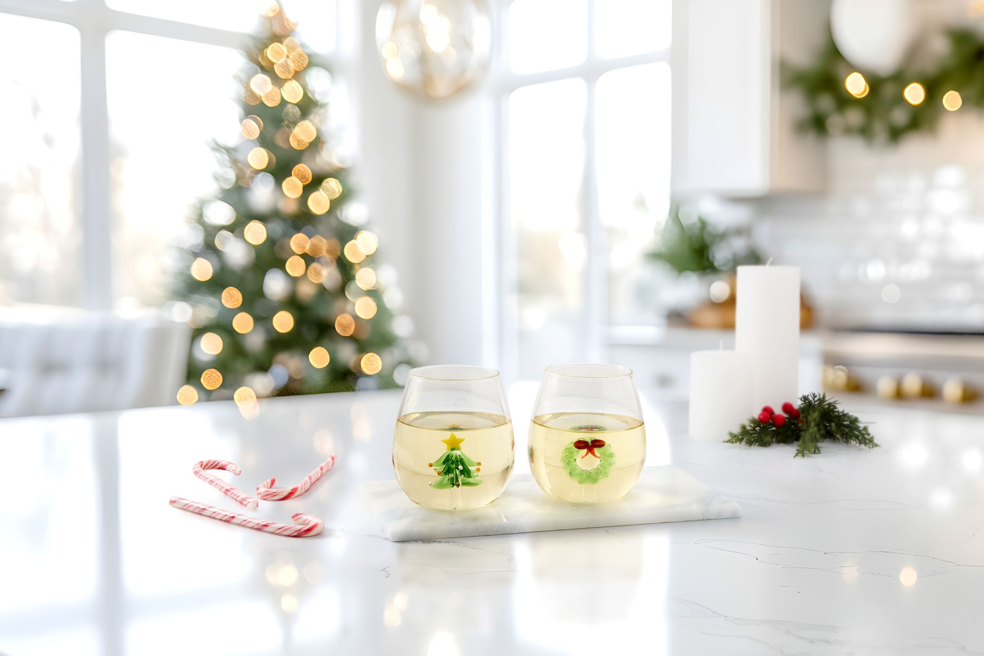 Celebrate the holiday season with these charming Core Home Holiday Wine Tumblers. Perfect for festive gatherings, each set includes two stemless glasses adorned with delightful Christmas-themed icons.