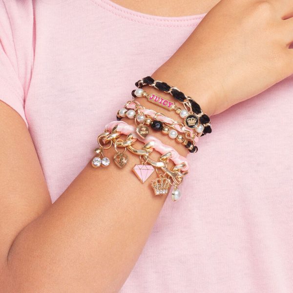 Avid bracelet designers will love this Juicy Couture DIY charm bracelet kit! Mix and match the assortment of beads and charms to make up to 5 beautiful bracelets. Real Juicy collectible charms included.