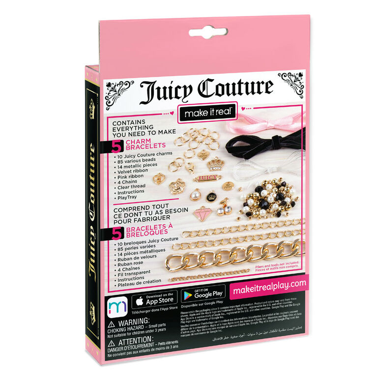 Avid bracelet designers will love this Juicy Couture DIY charm bracelet kit! Mix and match the assortment of beads and charms to make up to 5 beautiful bracelets. Real Juicy collectible charms included.