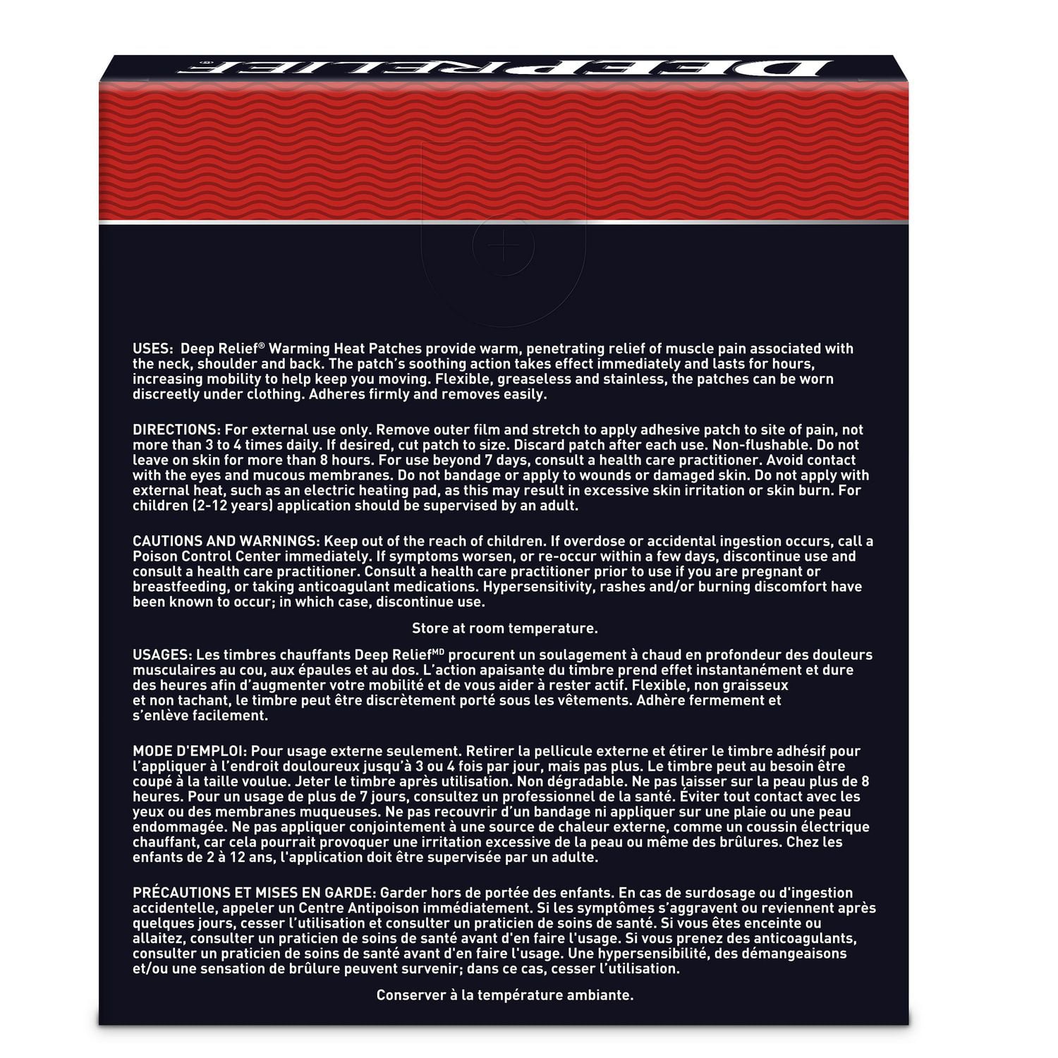 Deep Relief Extra Strength Warming Heat Pain Relief Patch, Relieve and Soothe Aching Muscles, 6 count, Warming Heat Pain Relief Patches, 6 count
