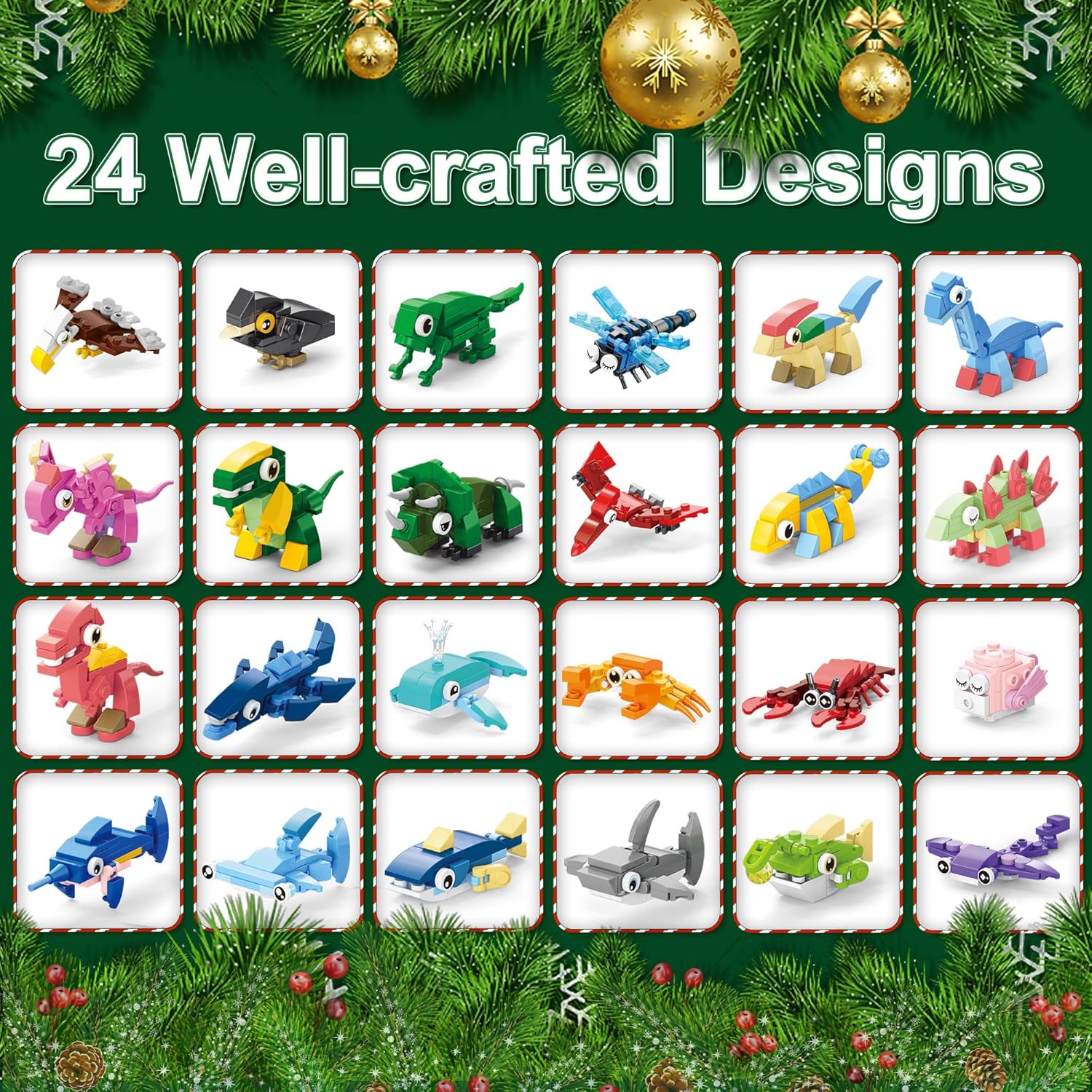Dinosaur Advent Calendar 2025, 24 Day Christmas Countdown Toy Kit Building Blocks Compatible, Xmas Gifts for Boys Girls