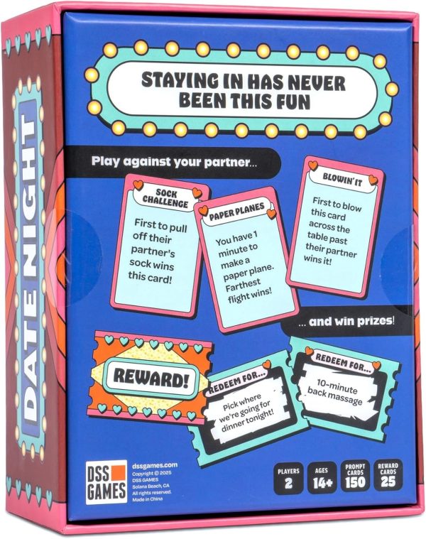 - How to play: Compete in fun, fast-paced challenges against your partner, from silly dares to creative tasks. Win a challenge, keep the card. The first player to collect 5 winning cards earns a scratch-off reward ticket revealing a surprise prize! Along the way, you’ll also draw “Just for Fun” cards, which offer sweet breaks from competition that spark laughter and connection.