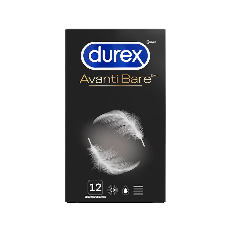 Durex Avanti Bare Condoms are ultra-thin, transparent condoms made from natural rubber latex. Each condom features a smooth shape with a reservoir tip and a regular 52 mm nominal width. They are pre-lubricated with silicone lubricant and supplied in a 12-count pack. All condoms are electronically tested, with additional quality checks conducted on each production batch. Always read and follow package directions and warnings before use.