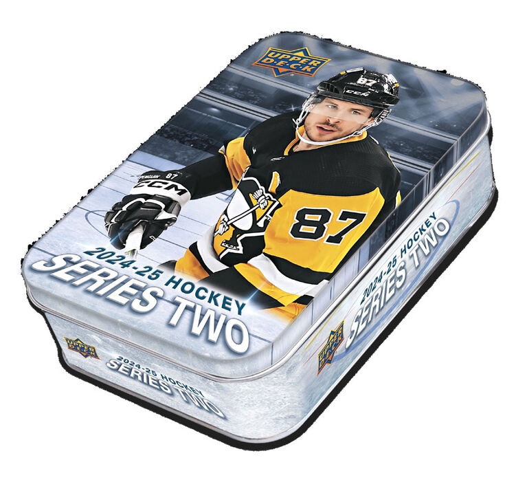 Series 2 sports the next 250 cards of the 2024-25 Upper Deck Base Set. Annually, the Upper Deck Base Set is the most widely-collected Base Set in hockey. The Dazzlers set also returns for another season! These eye-popping cards boast a new design for the 2024-25 season and come in the Tin-exclusive Red, Orange, and Black versions. Dazzlers is a 150-card intra-series set, and Series 2 sports the next 50 cards. There are 8 Packs + 1 Dazzlers Bonus Pack per Tin.