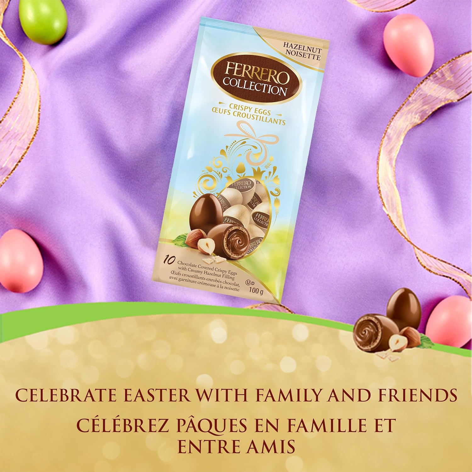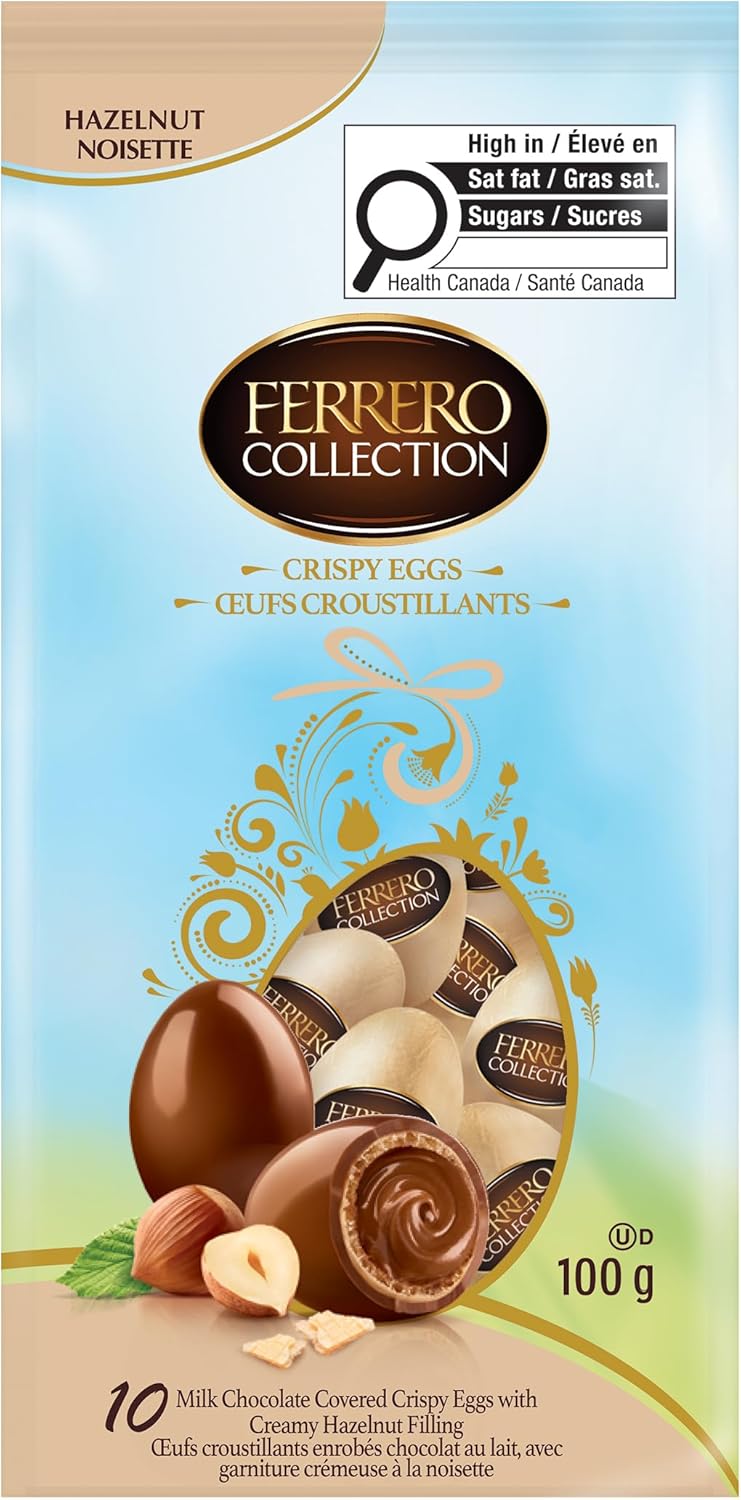 FERRERO Eggs; Hazelnut Milk Chocolate Eggs; Creamy Hazelnut Filling; 10 Individually Wrapped Chocolates; Easter Eggs; Easter Chocolate 100 grams