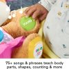 - Snuggly plush toy that teaches over 100 first words with 75+ songs, sounds, tunes and phrases