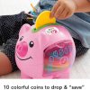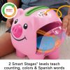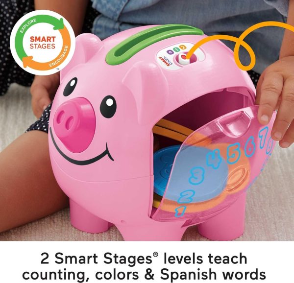The Laugh & Learn Smart Stages Piggy Bank introduces your baby to counting, colors, Spanish words and more through music, silly sounds and phrases. With 10 colorful coins to drop into the Piggy Bank’s back, and a door for put-and-take play, there’s so much for your little banker to explore. Put coins in, take them out, press the silly piggy’s snout – your baby will be giggling all the way to the bank! And with 2 Smart Stages levels of play, the learning fun grows along with your baby.