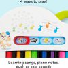 - Take-along piano toy with 4 ways to play! Real piano notes, duck sounds, cow sounds, and learning songs and phrases