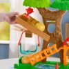 Hands-on fun at the wildlife habitat: rock the teeter-totter treetops, tip the platform to send food balls rolling down, place an animal on the working swing